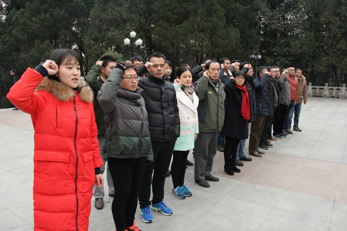 随后,大家瞻仰了革命烈士纪念塔。纪念塔位于山顶,党员同志们拾级而上,台阶两侧青松翠柏,庄严肃穆。塔上刘伯承亲笔题写的“燎原星火”四个金色大字熠熠生辉。党员同志们首先向纪念塔深深地鞠躬三次,又向烈士纪念塔敬献了花篮。面对鲜红的党旗,全体党员举起右拳激情澎湃、誓言铿锵地重温了入党誓词。宣誓完毕,大家有序瞻仰了洪学智将军墓园。