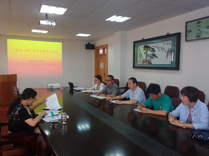 “两学一做”学习教育具体行动方案》的有关要求,深入推进学习教育,根据地理土地教工支部“两学一做”学习教育安排,2016年7月28日下午,地理土地教工支部组织召开“两学一做”学习教育第二专题学习会。会议由支部书记方凤满主持。