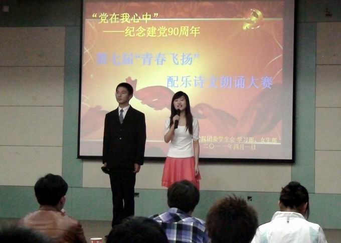 值此建党90周年之际,青年大学生们用诗歌朗诵表达情感,用自己的方式向党的90华诞献礼。