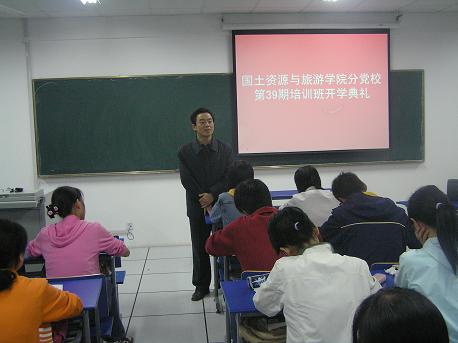 在实验楼201教室举行第39期大学生入党积极分子培训班开学典礼。校党委组织部副部长、党校常务副校长季爱新,院党委书记、分党校校长李忠出席了典礼。