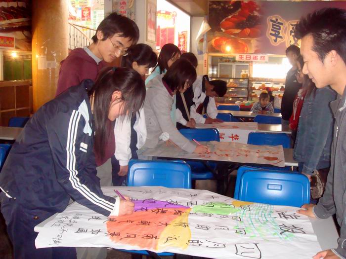 4月19日,国旅女同做爱 第40期入党积极分子培训班同学在学生一食堂一楼举行了“我为学校80周年华诞添彩”的校庆主题海报制作大赛活动。此次大赛在负责老师、党校骨干精心组织下以及党校学员的积极参与下取得了圆满成功。
