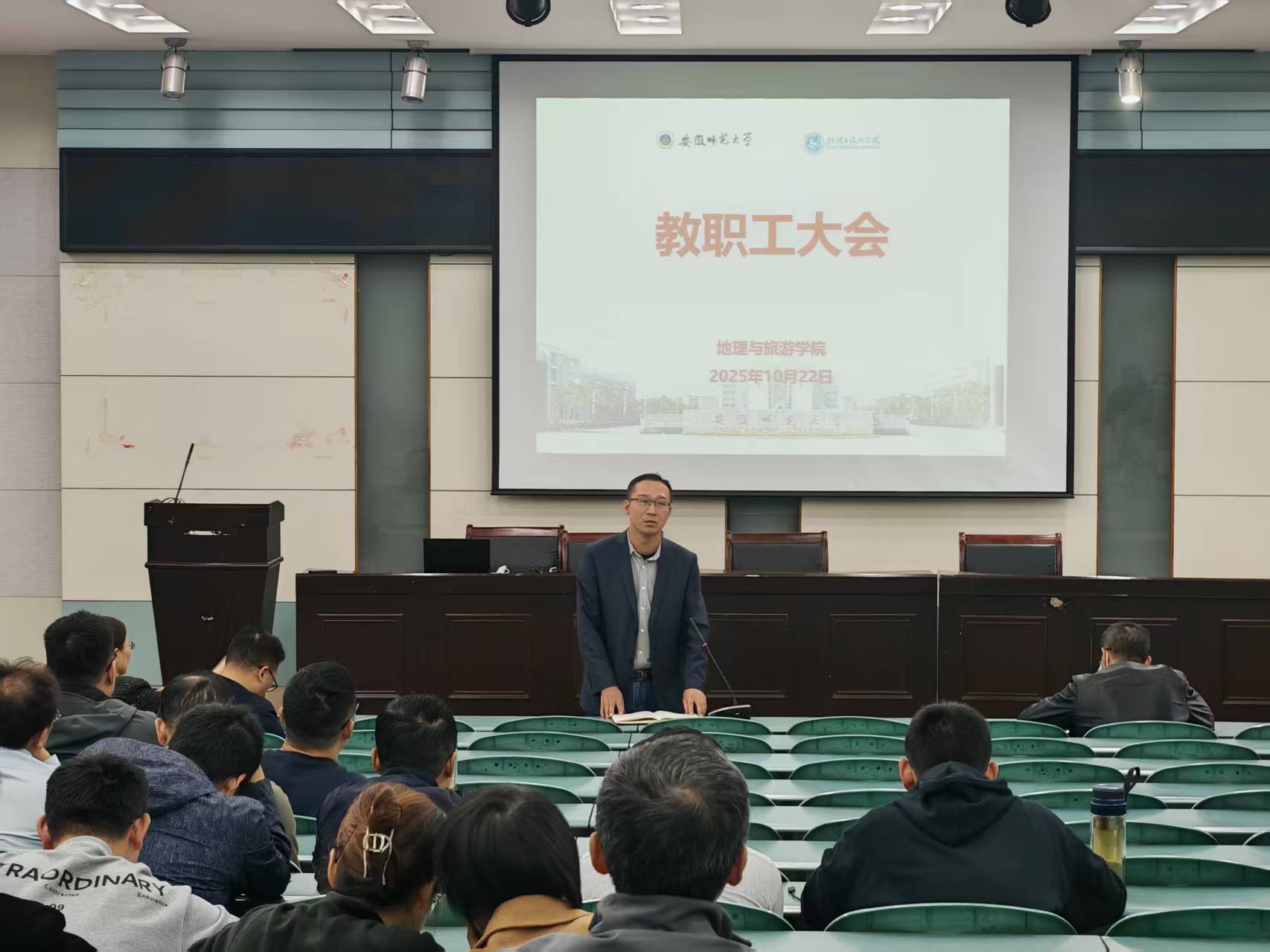 副院长杨兴柱就本科生教学和研究生教育管理工作进行布置,传达学校关于做好2026届本科毕业论文(设计)工作的通知精神,要求专业教师做好学生论文指导,严格遵守教学工作纪律,明确划分课程学时学分。副院长汪文文就日常考勤、经费报销、工会福利政策调整等进行了说明。院党委副书记付勇通报了新生入学教育、“大调研、大走访、大谈心”等近期学生护航重点工作和2025届毕业生就业去向落实情况。