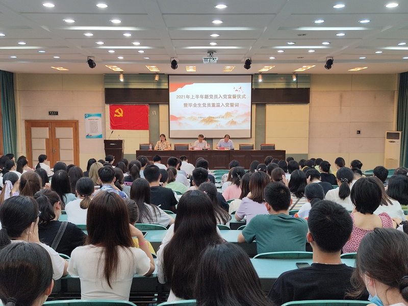党委在院实验楼101报告厅举行2021年新党员入党宣誓仪式暨毕业生党员重温入党誓词活动。院党委书记贾冠忠、党委副书记乔静、各本科生支部书记、毕业生党员与2021年新发展入党的预备党员参加仪式,面对党旗庄严宣誓。仪式由酒店土地本科生党支部书记王美主持。