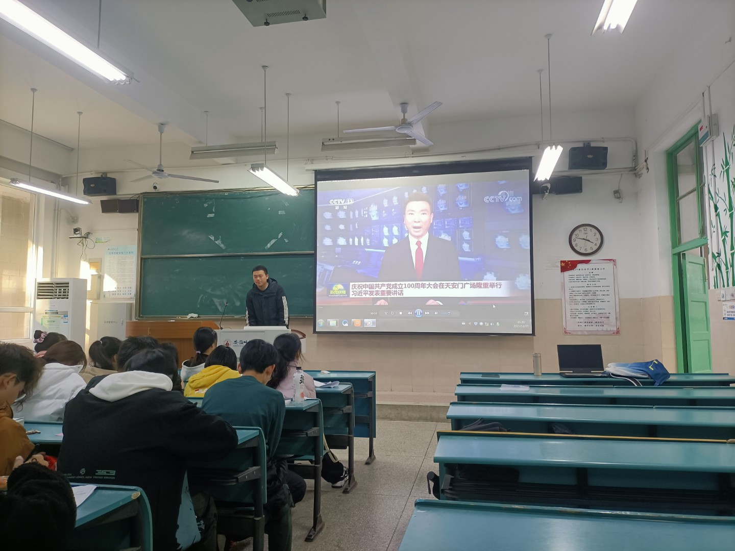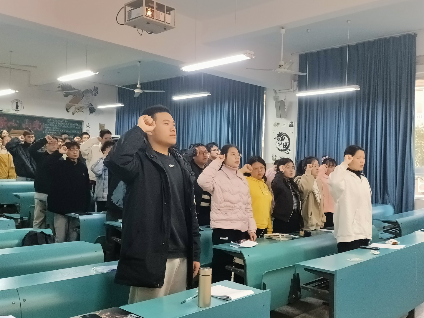 大会主要分为五项议程,第一项,团支部书记汪子韩同学汇报团支部今年开展的党史学习教育情况;第二项,全体同学起立唱团歌;第三项,团支部书记汪子韩同学带领全体同学学习习近平总书记“七一”重要讲话精神,第四项,素拓委员王蕊同学和第五团小组组长程灵箫同学结合学习和生活实际以及自身日常行为表现的情况,进行交流发言,各团小组组长汇报对团支部委员会工作的意见和建议;最后,我们全体起立,一起宣读入团誓词,铿锵有力的宣读声的背后,是我们对团组织的信任和敬仰。