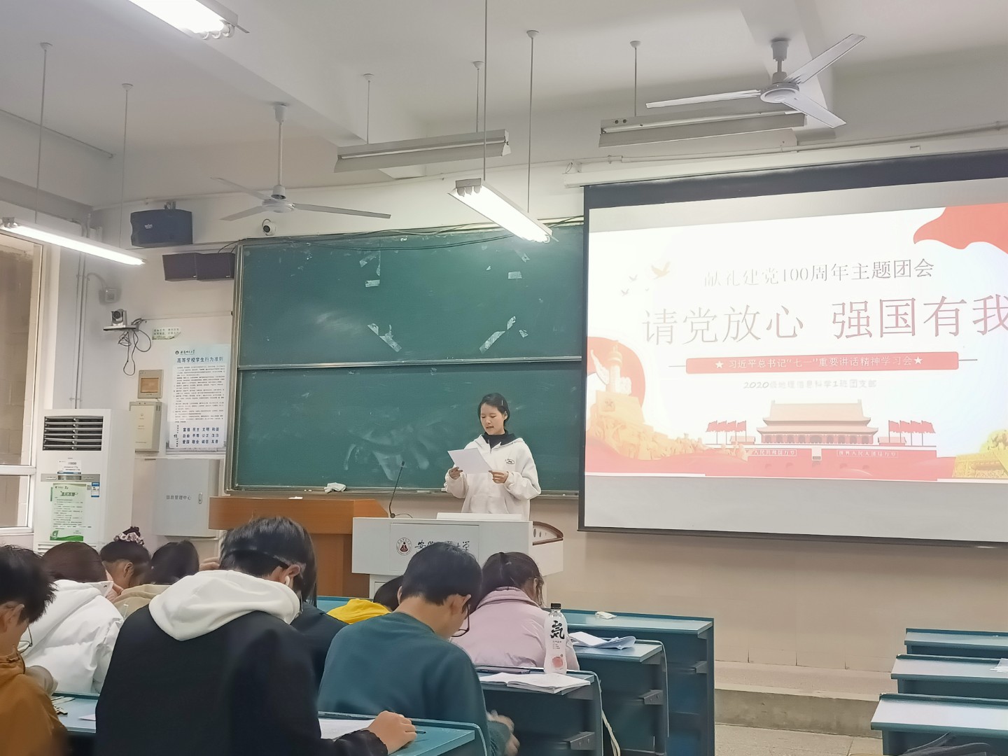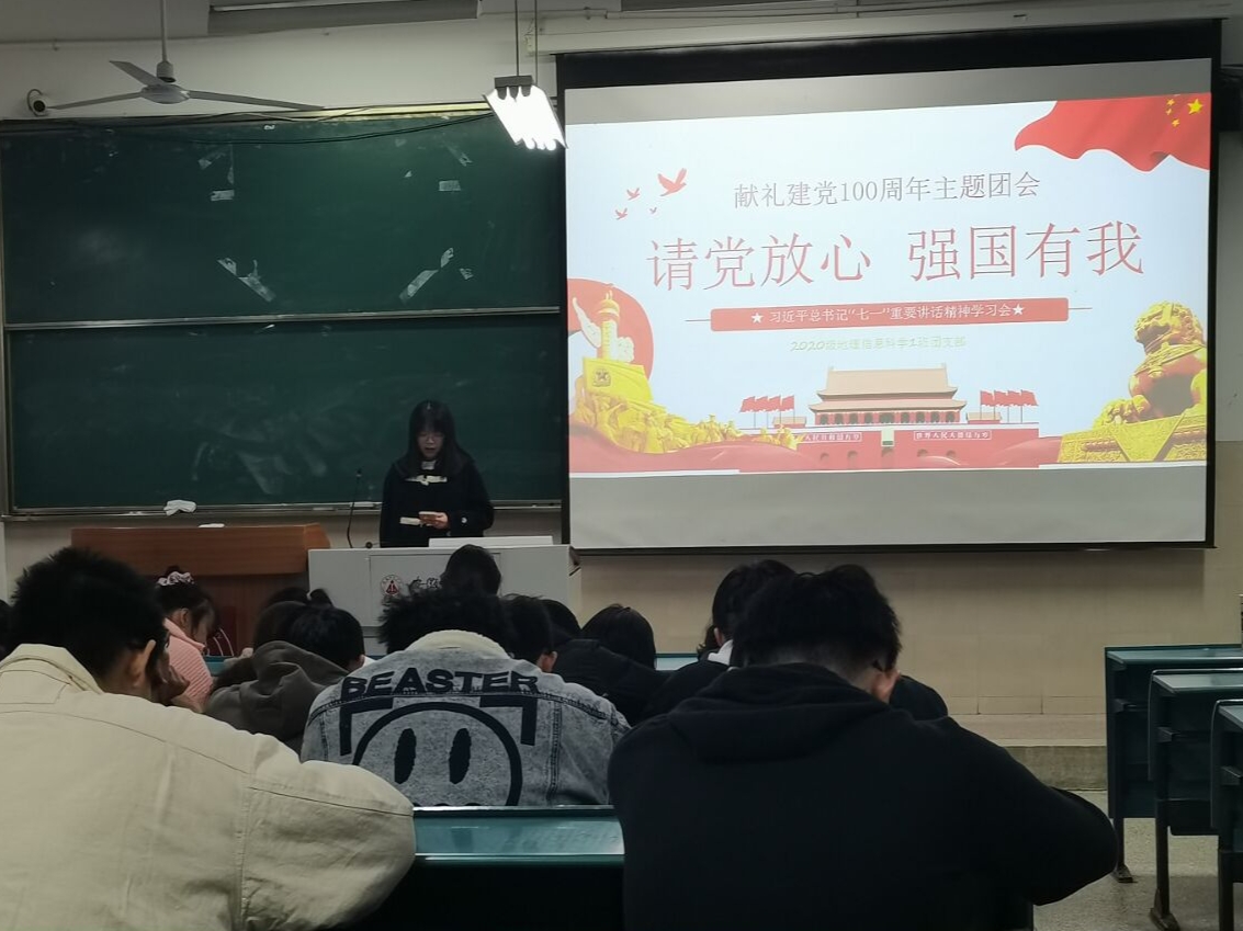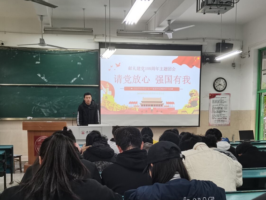 程灵箫 彭媛媛)2021年11月25日下午3点,2020级地理信息科学班级全体成员在行知楼2040102召开支部大会,本次支部大会围绕“请党放心,强国有我”主题,对近几个月班级团支部的学习和工作情况做出了总结,也对未来做出了展望,整个会议过程由团支书汪子韩同学主持。