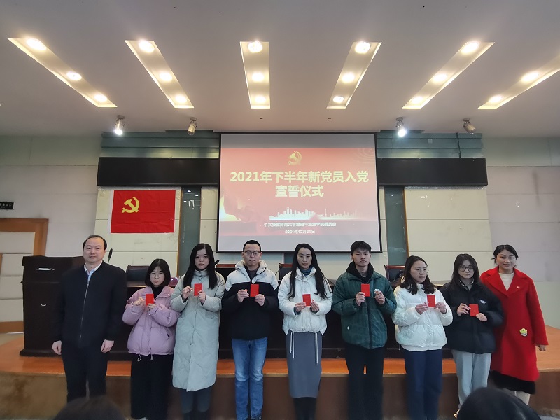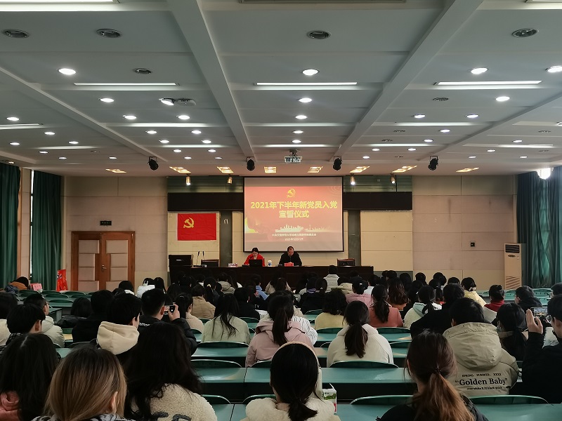 党委在院实验楼101报告厅举行2021年新党员入党宣誓仪式。院党委副书记乔静、各学生支部书记、2021下半年新发展入党的预备党员参加仪式,面对党旗庄严宣誓。宣誓仪式由党校班主任王美主持。