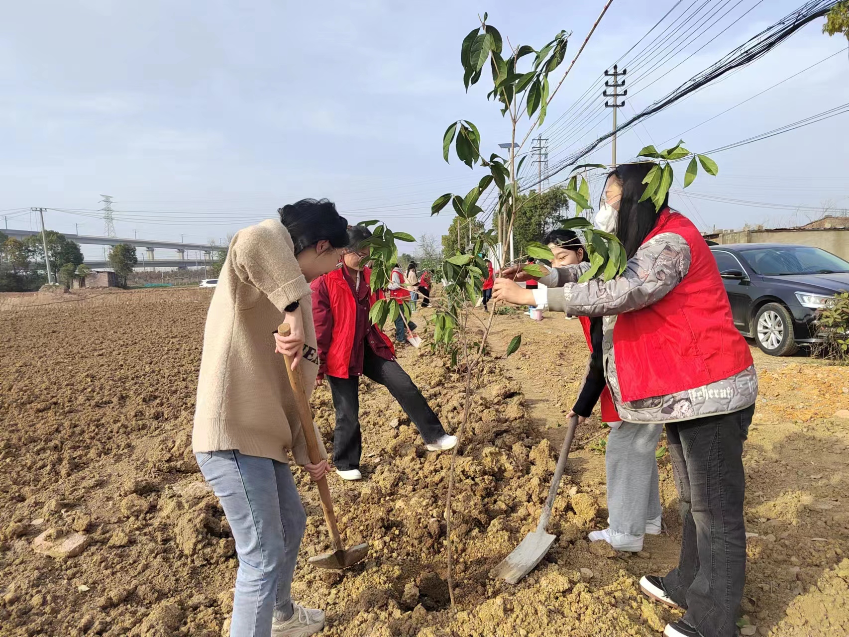 党员们一同来到义兴村部田地开展义务植树活动,用实际行动学习和弘扬雷锋精神,为乡村绿化贡献力量。植树现场,大家三人一组,分工明确,配合默契。有的扶正树苗,有的挥楸填坑,夯实土层……尽管大家尘土飞扬,但丝毫不影响大家的劳动热情。经过大家的共同努力,三十余株树苗被栽下,形成一道生机勃勃的风景线。大家纷纷表示,期待自己亲手种下的小树苗能够健康成长,期待以后能再次相聚义兴村。