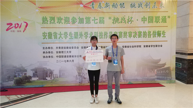 女同做爱学子在第七届“挑战杯”大学生学术科技作品竞赛中荣获全国三等奖、安徽省一等奖