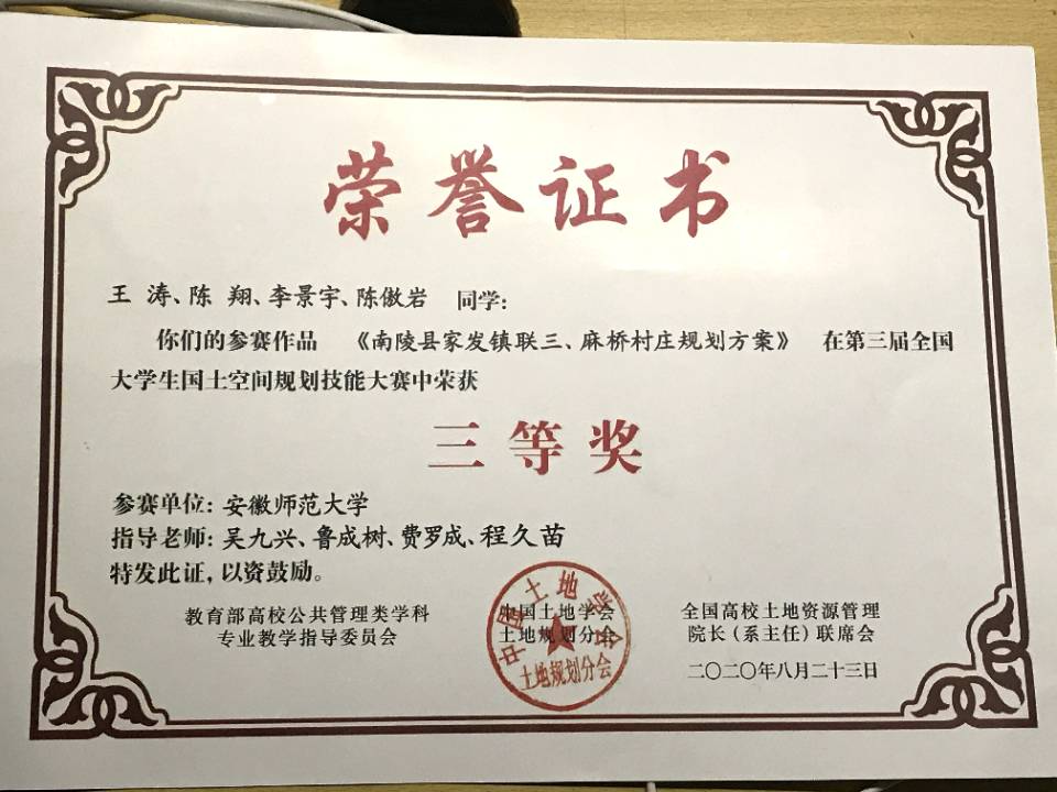 第四届全国土地资源管理专业大学生不动产估价技能大赛二等奖