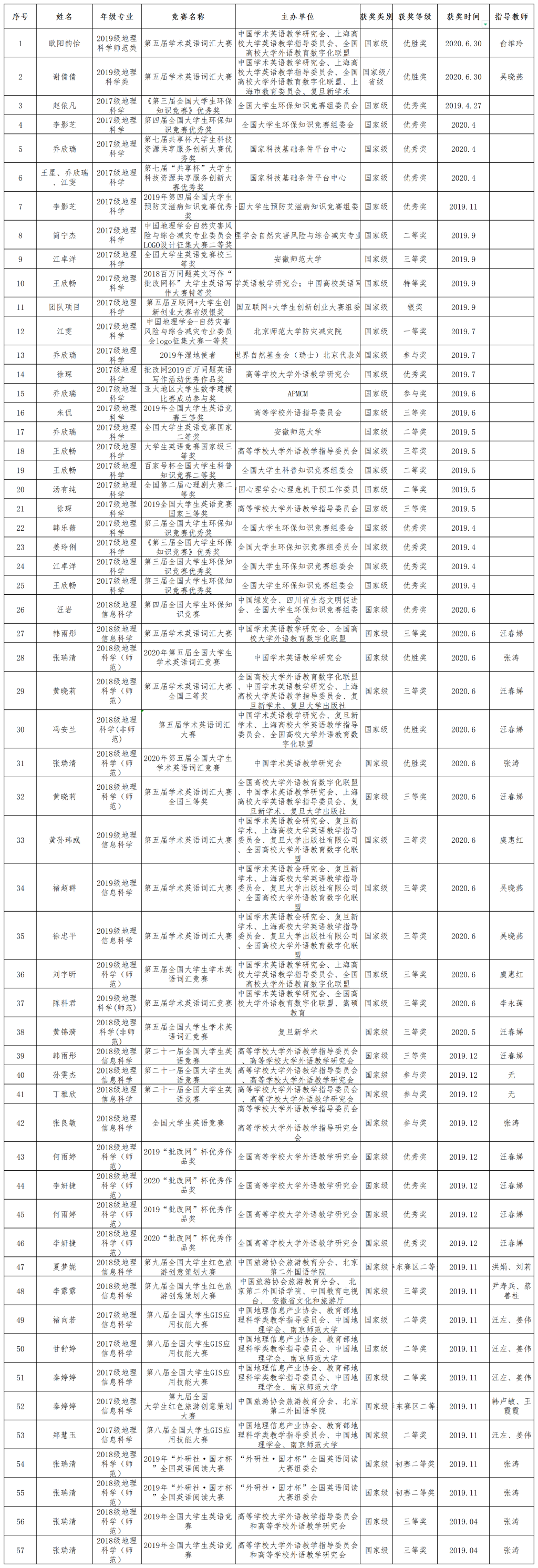 2019、2020年女同做爱 学生获奖情况(部分)