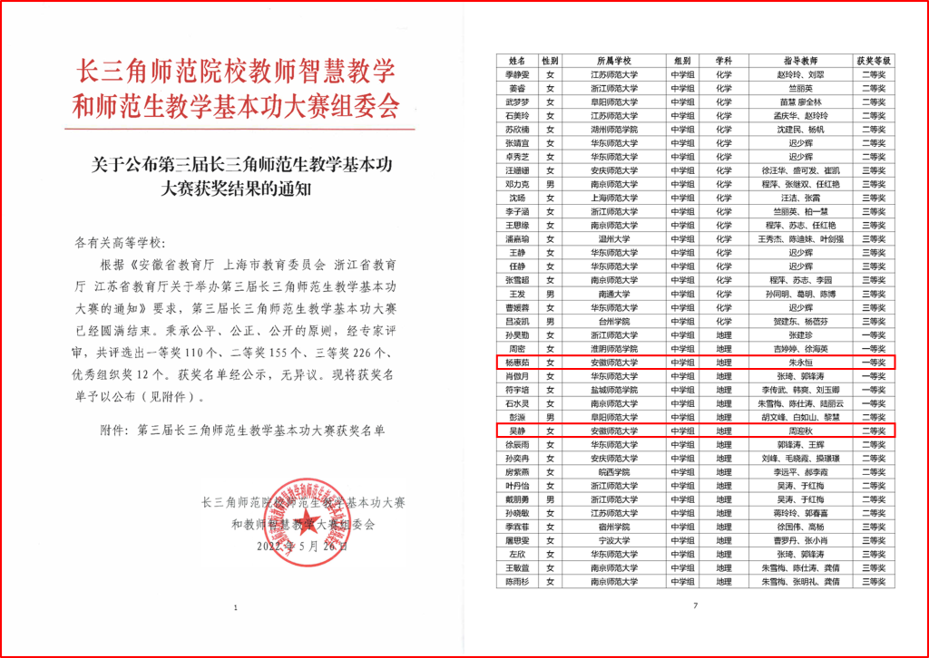 第三届长三角师范生教学基本功大赛一等奖
