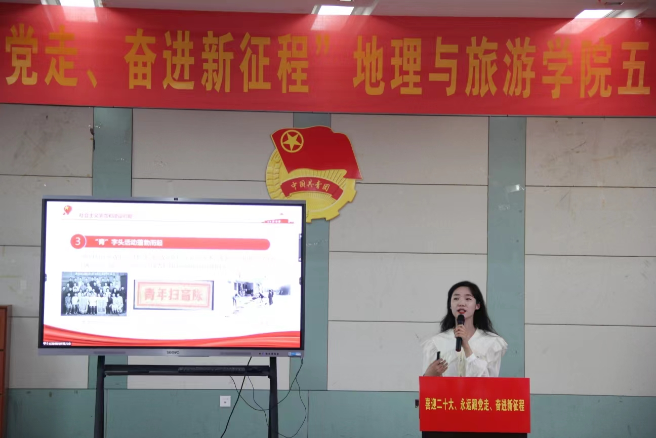 立足官Q、官微、“青春地旅”微信公众号及视频号等,宣传思想、推广典型。并立足学科专业特色,创新打造“云端”党史学习教育新载体,采取“互联网+红色旅游”模式,研发相关“互联网+”思政产品“总书记的红色足迹”红色旅游智慧数字地图,创新开展“云党课”“云服务”“云分享”“云研讨”等线上活动。