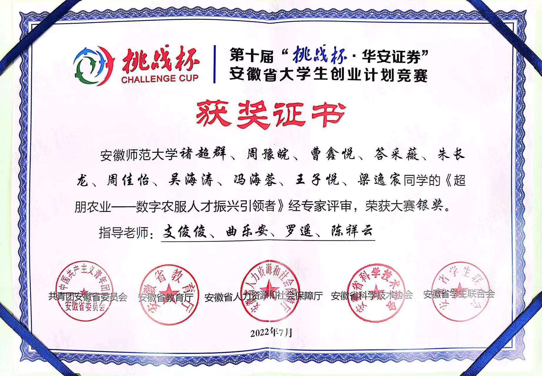第十届“挑战杯”安徽省大学生创业计划竞赛银奖1项、三等奖2项
