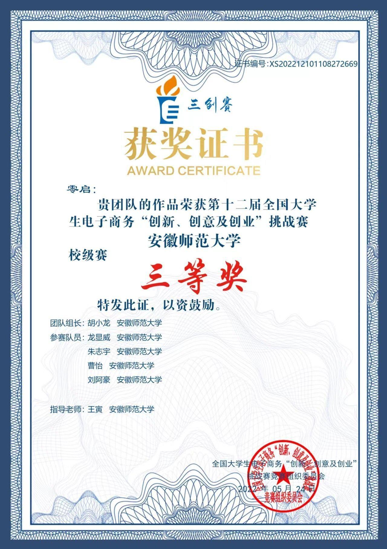 第十二届全国大学生“三创赛’三等奖