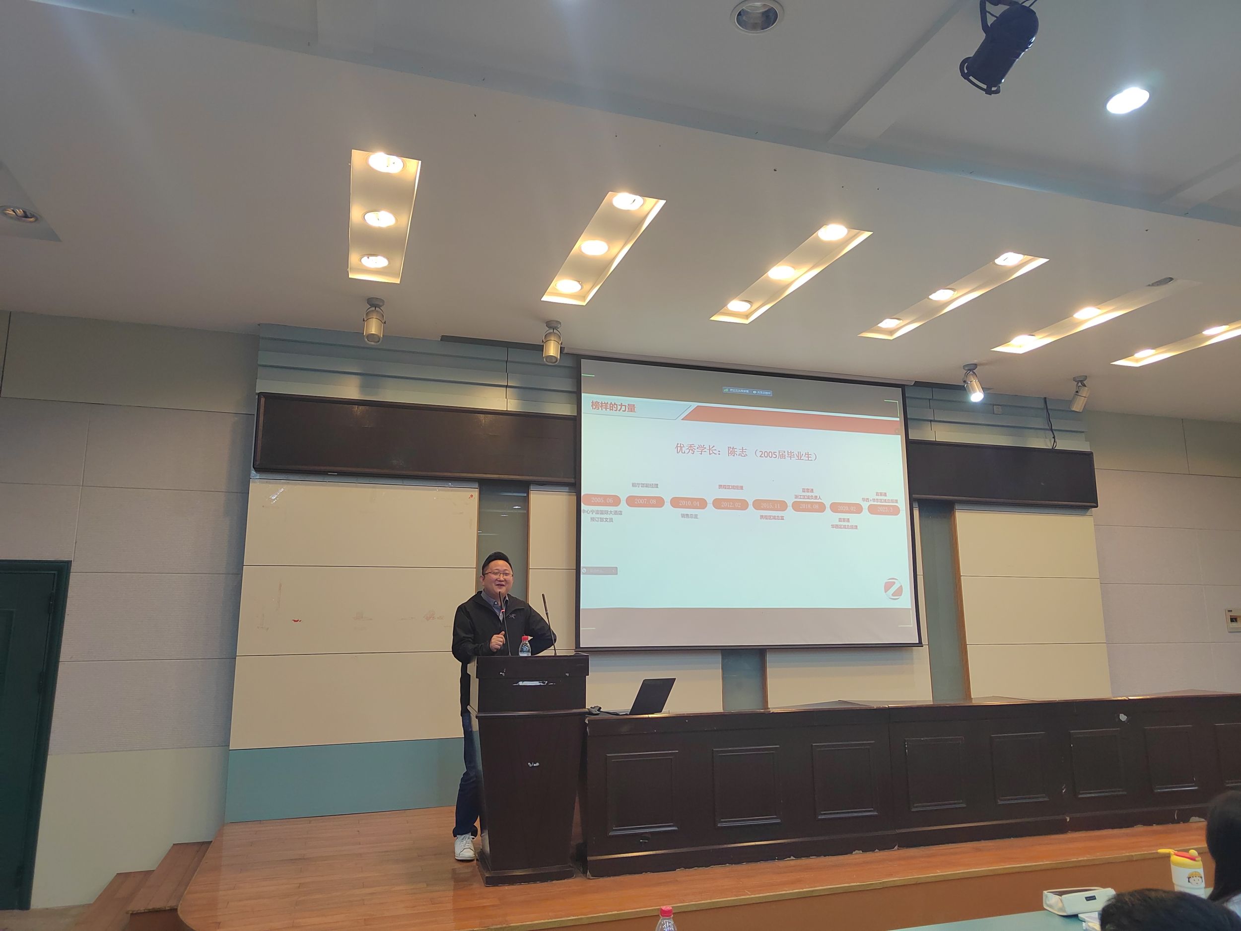 旅游管理专业邀请2005届旅游管理专业校友、宁波松茂包装有限公司总经理朱立松、2005届旅游管理专业校友、北京直客通科技有限公司大区总经理陈志、以及浙江一站通供应链管理有限公司总经理余中洋来女同做爱