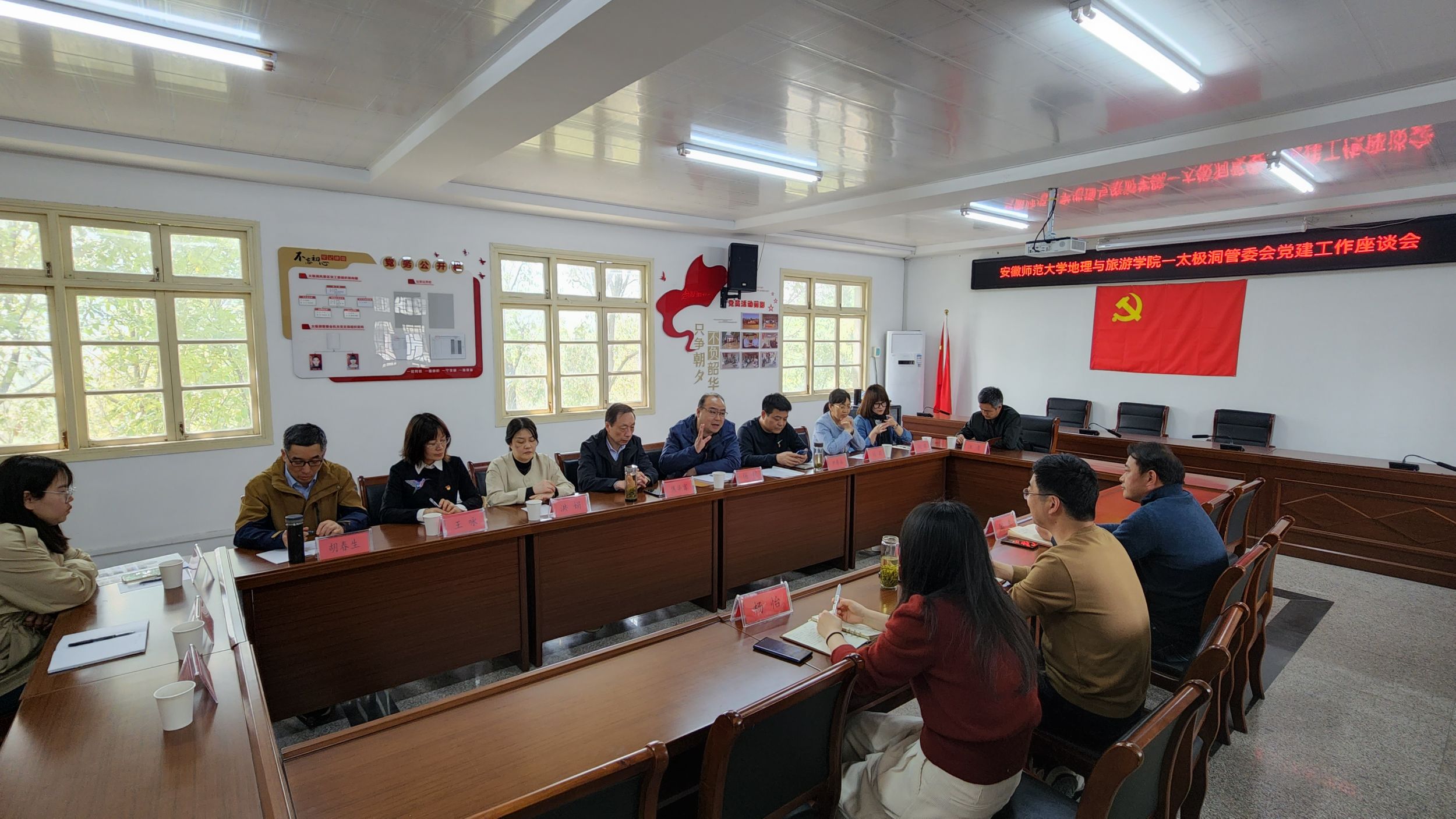 校地合作促发展,互利共赢谱新篇。旅游管理系教工党支部与广德太极洞管委会党支部开展党建工作座谈会。太极洞管委会党工委委员、管委会副主任曾宪成,旅游管理系教工党支部王咏、洪娟老师就党建工作进行交流发言,旅游管理系专业负责人尹寿兵教授介绍了旅游管理新文科研究与改革工作,杨钊教授介绍了课程合作内容和模式。本次座谈会取得了良好效果,双方表示将进一步深化落实战略合作协议的内容,未来双方将在企业培训、旅游产品调研、研学课程开发、暑期社会实践、实习就业等方面展开合作。