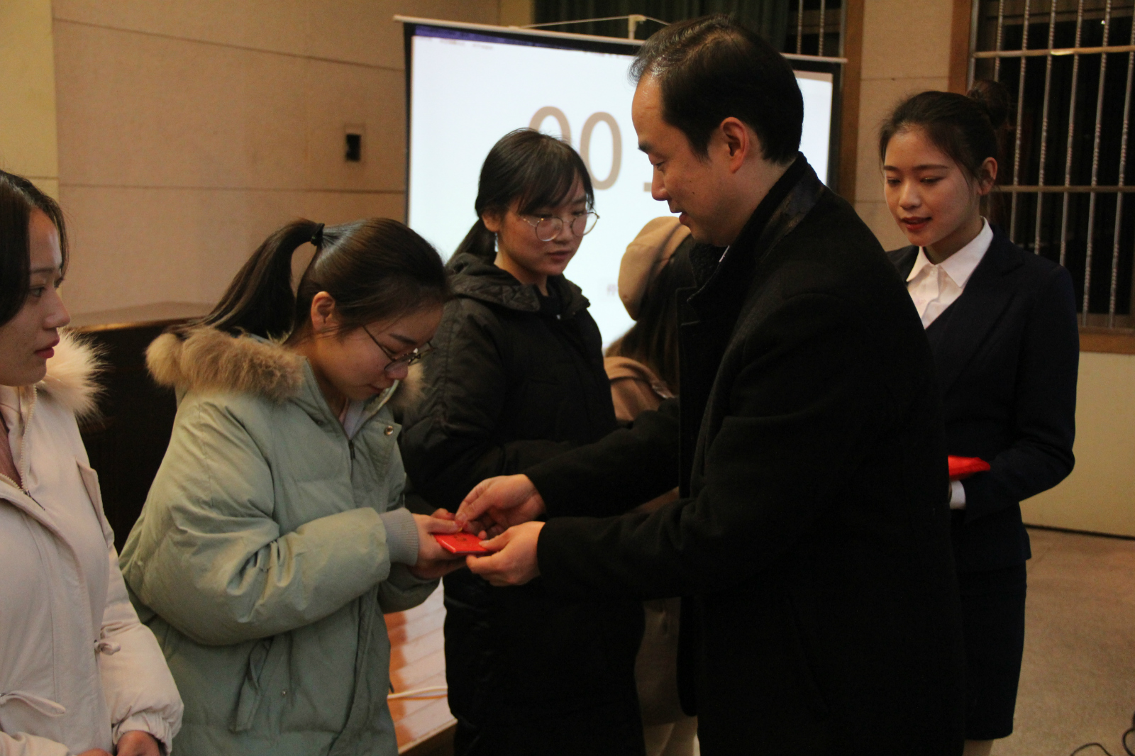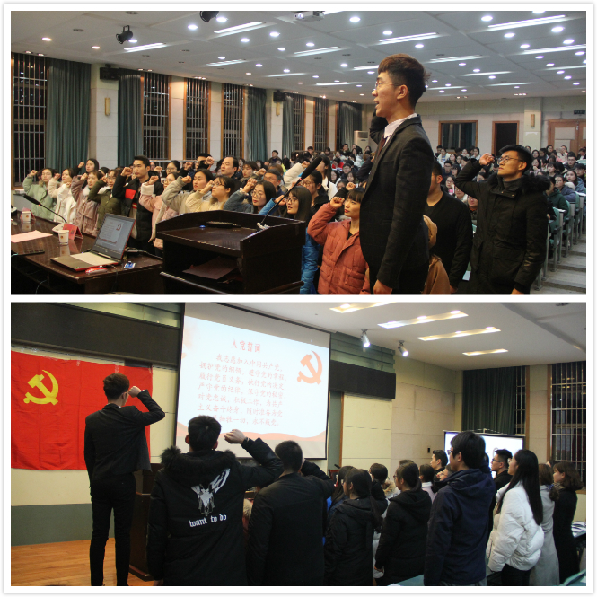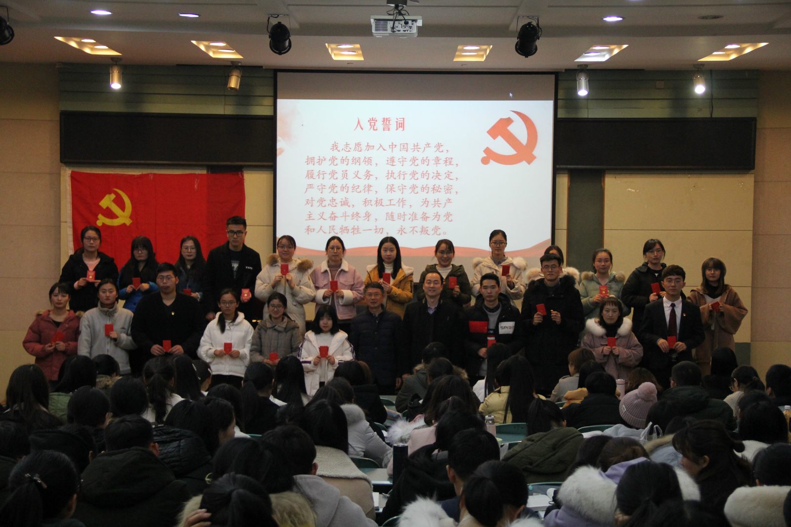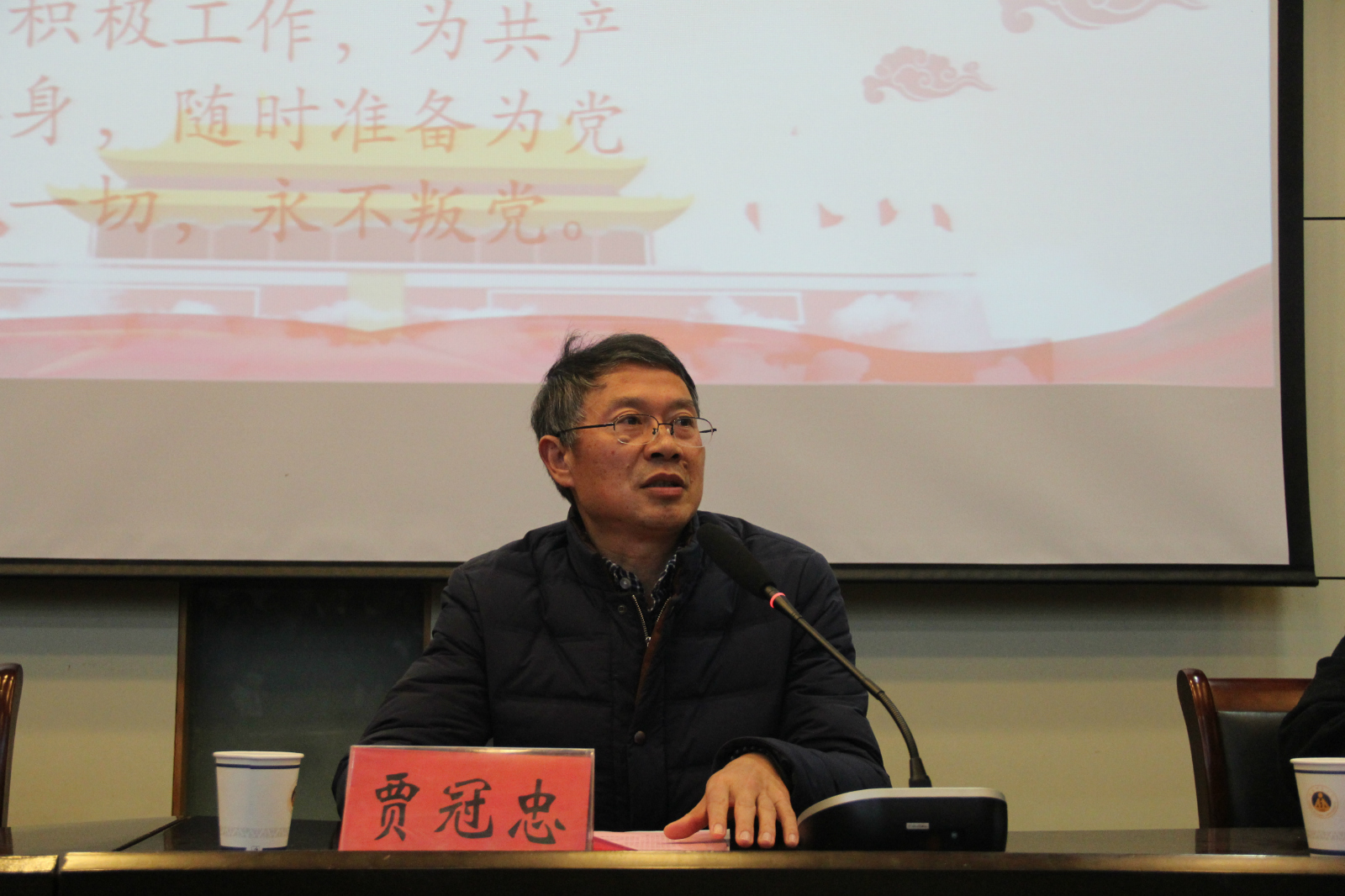 党委宣读了本期发展的32位新一批中共预备党员名单。他们在党员代表张流舰的领誓下,面对党旗,庄严宣誓。随后,预备党员代表丁茹栩发言,她表示,今天面对党旗宣誓令自己终身难忘,心情非常激动,今后,自己一定会牢记入党誓词,坚定为党和国家事业贡献自己奋斗一生的决心,认真学习科学文化知识,提升为人民服务的能力素质,为中国特色社会主义事业做出自己应有的贡献。随后,贾冠忠和乔静为预备党员颁发党徽和党费证,并为预备党员佩戴党员徽章。最后,贾冠忠做总结讲话,首先他表达了对新一批发展的预备党员和党校培训班结业学员表示祝贺,他强调入党宣誓对每一位党员而言,意义重大,面对党旗宣誓就是对党的承诺,他指出人生路道路很漫长,但起关键作用的就只有几步,今天我们新一批预备党员已经迈出了人生重要的一步,在接下来的日子里,希望预备党员们要牢记入党誓词,认真学习和践行党的理论和要求,学好专业知识,做合格党员,在实践中奋发有为,引领时代潮流,为中华民族伟大复兴做出贡献。