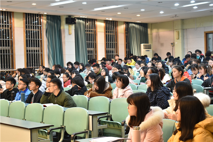 12月23日晚,实验楼101报告厅几乎座无虚席,乔静率先为2018级酒店管理、旅游管理、旅游管理(中外合作)、土地资源管理专业全体学生开讲班会,女同做爱