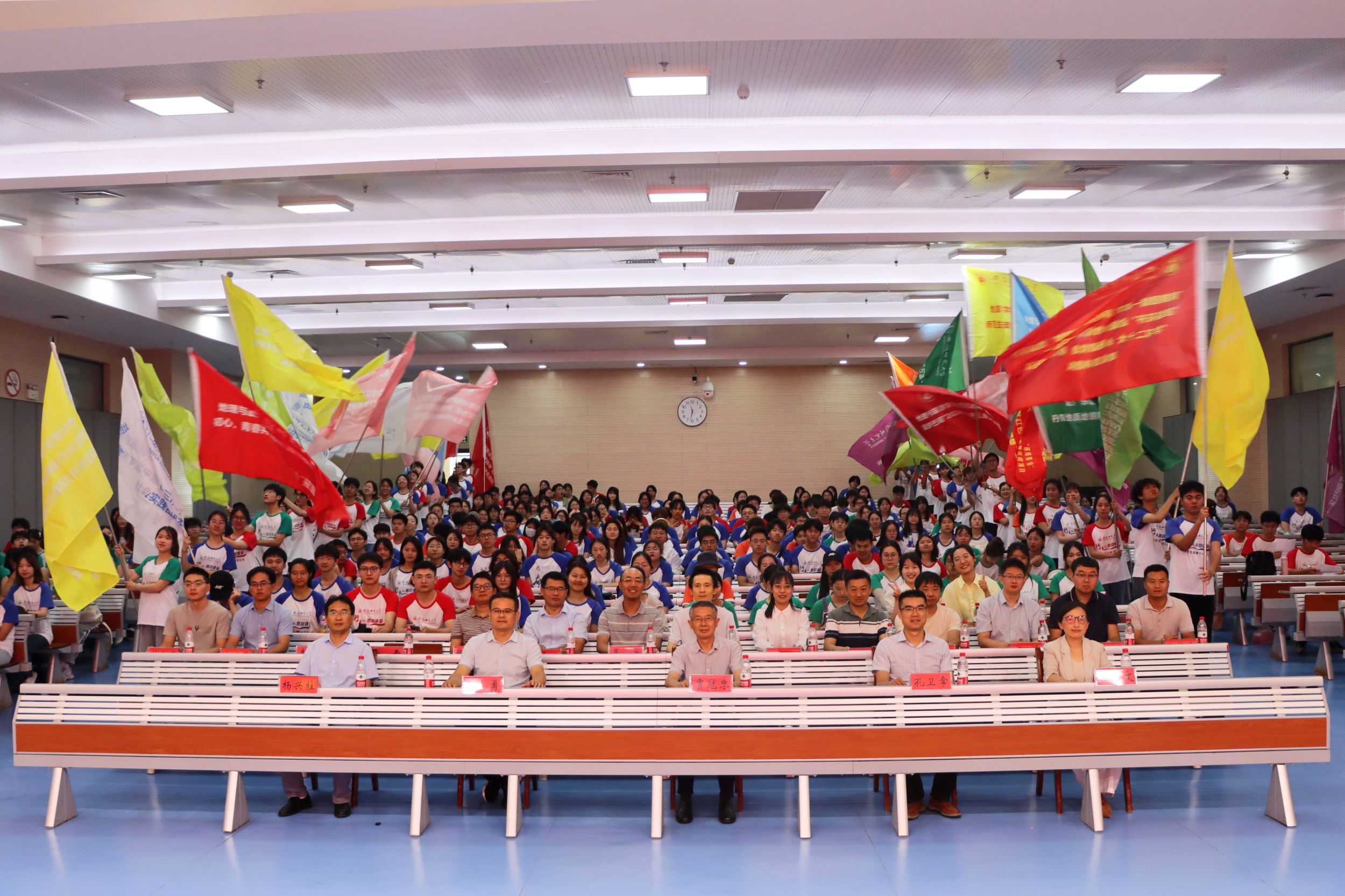 授旗仪式环节,贾冠忠、付勇为校级重点团队授旗,杨兴柱、汪文文为院级重点团队代表授旗。