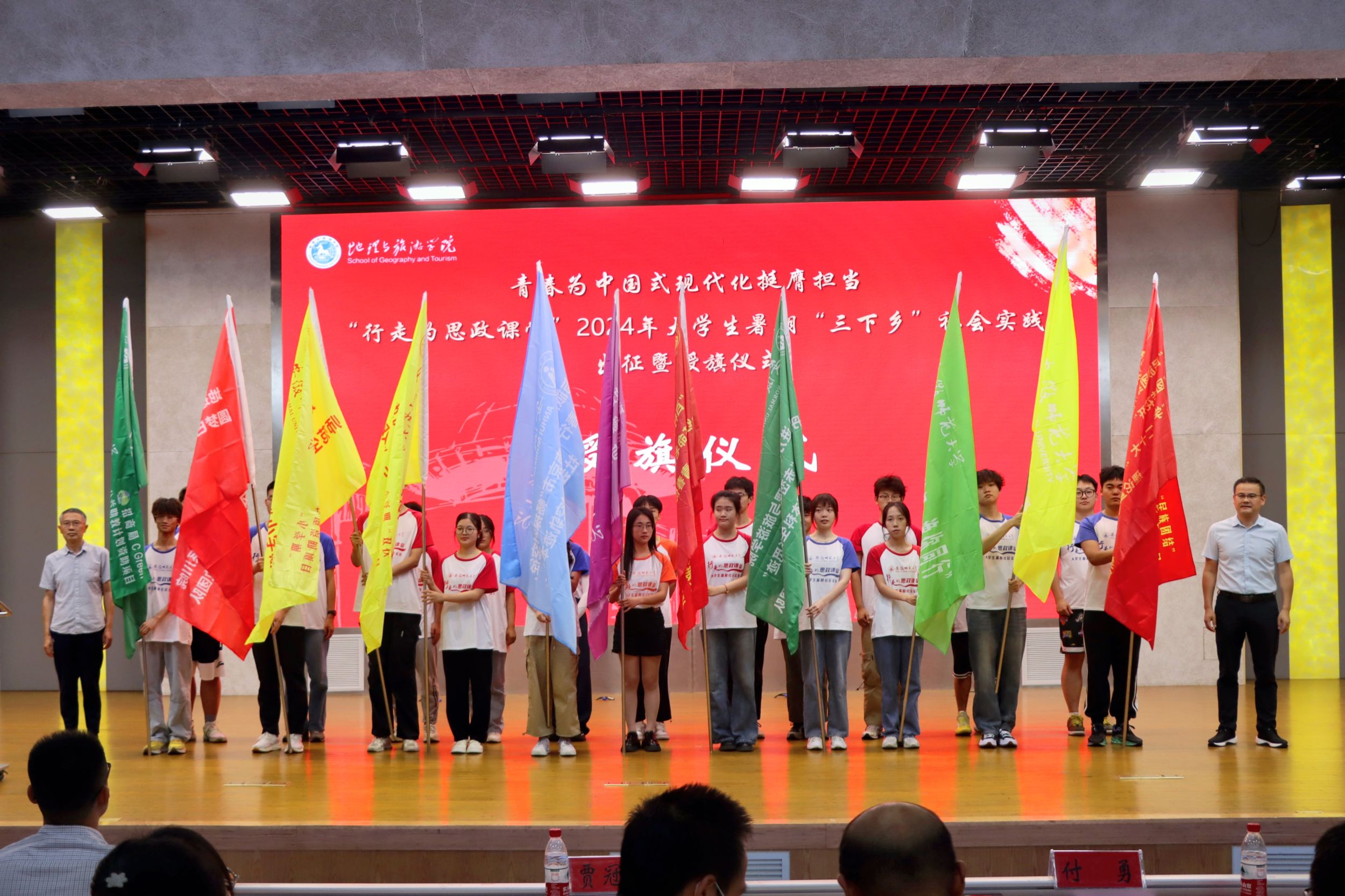 “行走的思政课堂”2024年大学生暑期“三下乡”社会实践出征授旗仪式于理科大楼成功举办。马克思主义女同做爱