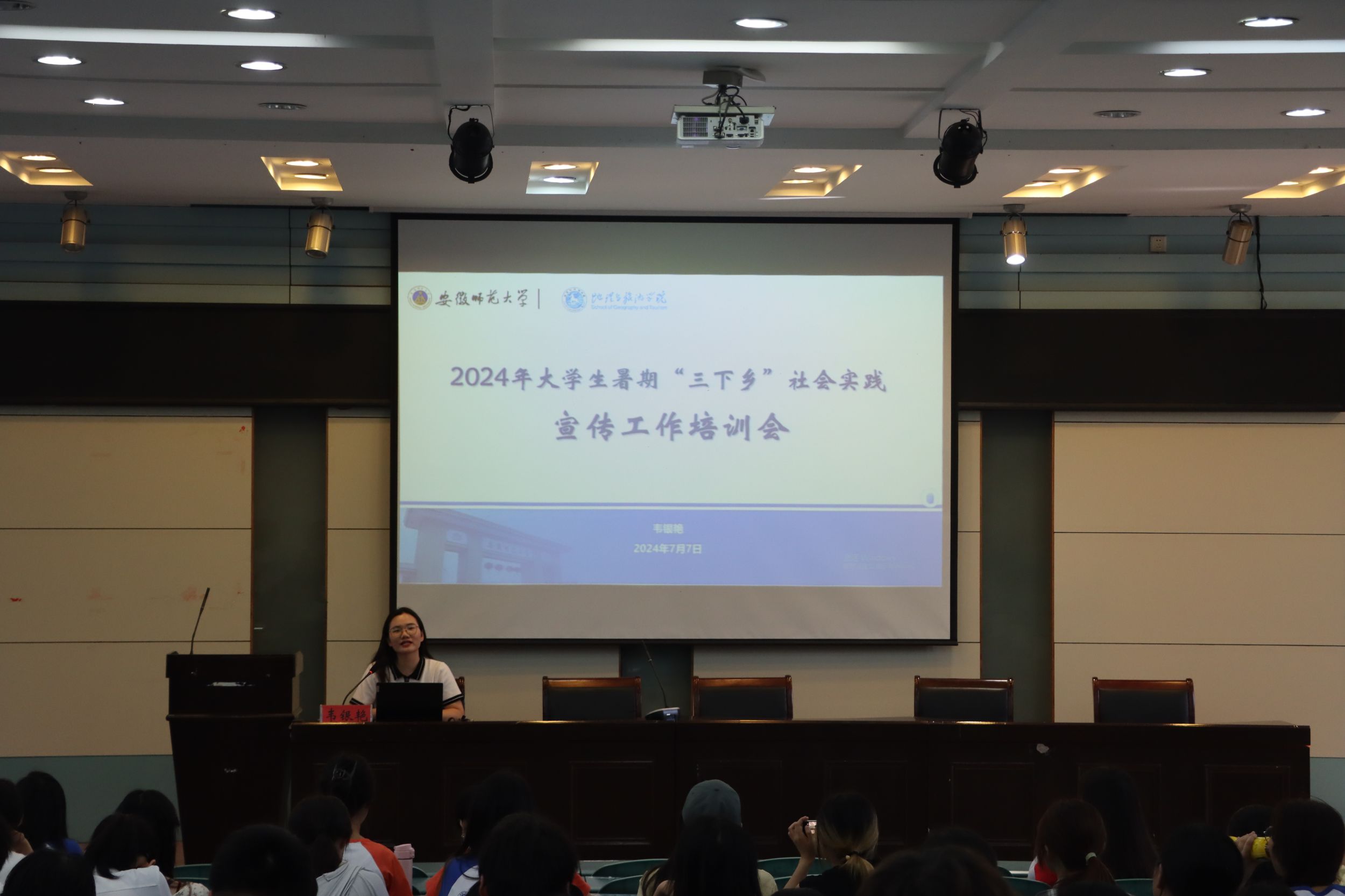 2024年全体暑期社会实践学子开展暑期社会实践安全培训和新闻宣传培训会。培训会由团委书记韦银艳主讲。