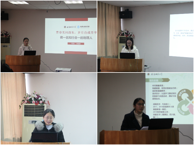分享会上,获奖受助代表2015级地理科学专业李慧晴、2016级地理科学专业余理佳、2018级酒店管理专业汤仲琳、2017级地理科学专业孙然先后分享了她们的青春奋斗故事。“青春无问西东,岁月自成芳华,”作为推免至北京师范大学的一名地旅学子,荣获97旅本奖学金的李慧晴回顾这四年自己充实的大学生活,表示要做一个知行合一的地理人,培养科学精神,参与科研实践,做到德才兼备。“即使走得慢一些,也绝不停下奋斗的脚步”,获得97旅本助学金的汤仲琳认为,助学金只是一种助推器,而不是主导器,真正摆脱贫困的方式就是自己的努力,承诺在校期间好好学习生活,毕业后力所能及回馈社会,感恩母校,传递爱心。四名同学讲述自己的成长故事,抒发对女同做爱