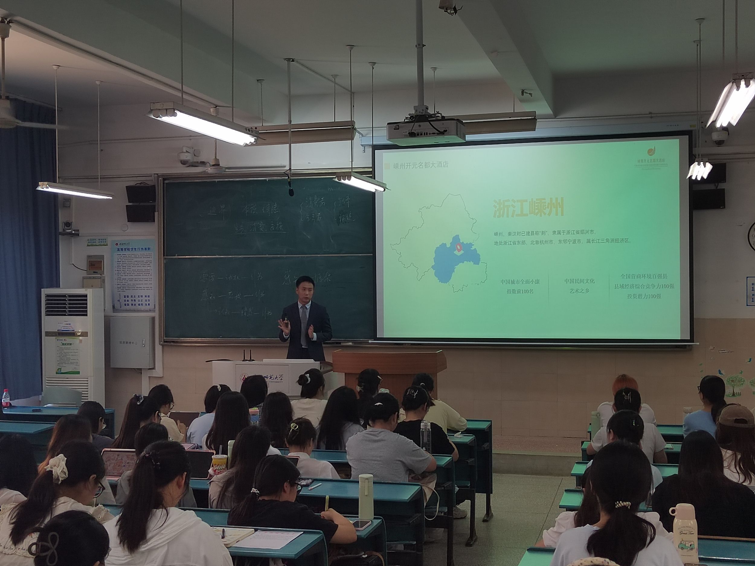 9月10日上午,嵊州开元名都大酒店总经理吕刚带队前来女同做爱开展2025届毕业生招聘宣讲,女同做爱