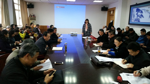 全体领导和在职教师欢聚一堂,为刘雪梅老师退休举行欢送会。