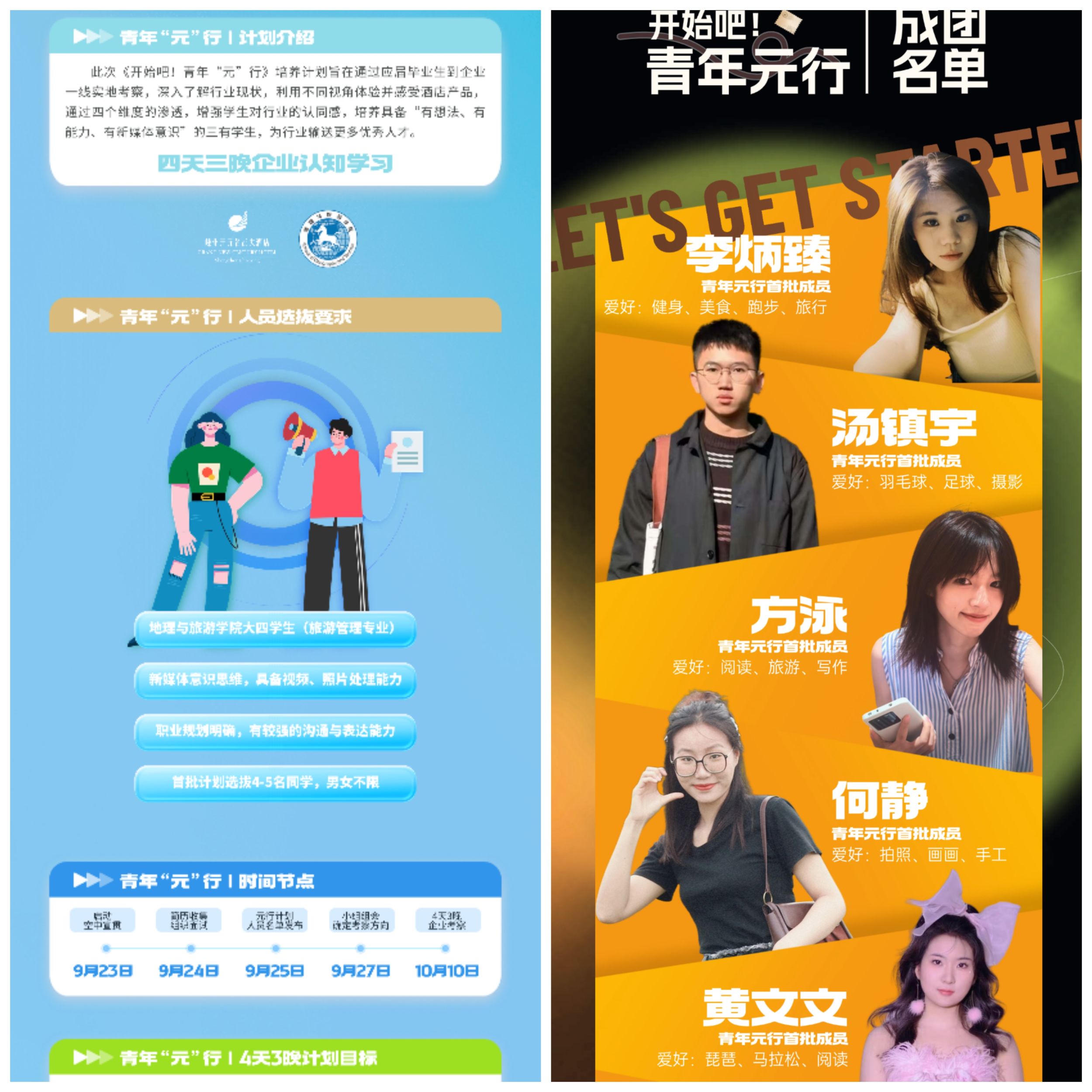 “元”行计划中的最大亮点,是嵊州开元名都大酒店通过招募大二(对行业感兴趣、前置意识培养)及大四(就业选择)的优秀同学开展为期四天三晚的行业探索,同学在此过程当中,各自发挥创意,以新鲜血液带动产品品质年轻化,让活力留在城市地标。此次“开始吧,青年元行”计划行程中,五位同学通过镜头记录下了自己的所思所感所想。同时酒店设置多轮考核,让同学们充分利用新媒体进行“自我营销”,目的也是为了让同学们在认知阶段便对线上新媒体渠道的玩法及基础操作进行培养,在后续实际工作中,能够充分将媒体思维+酒店工作融合创新。