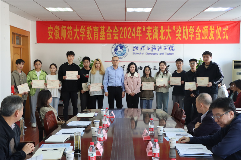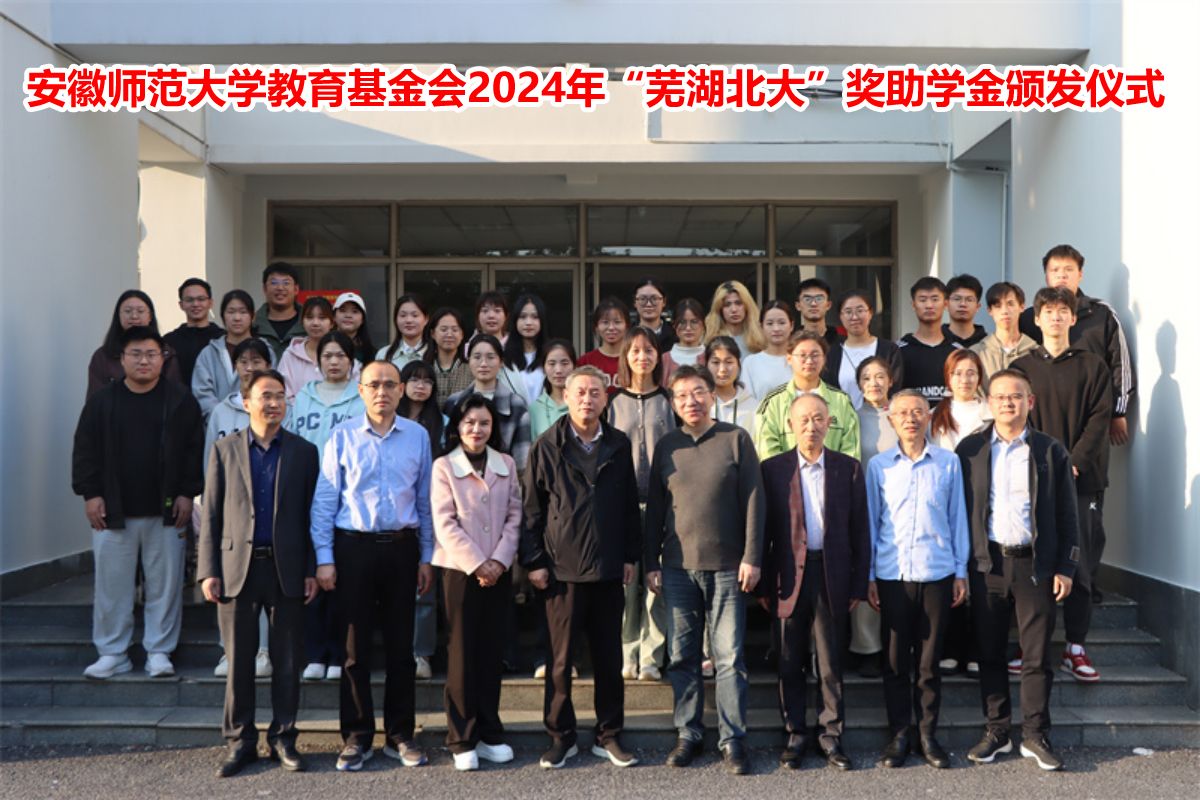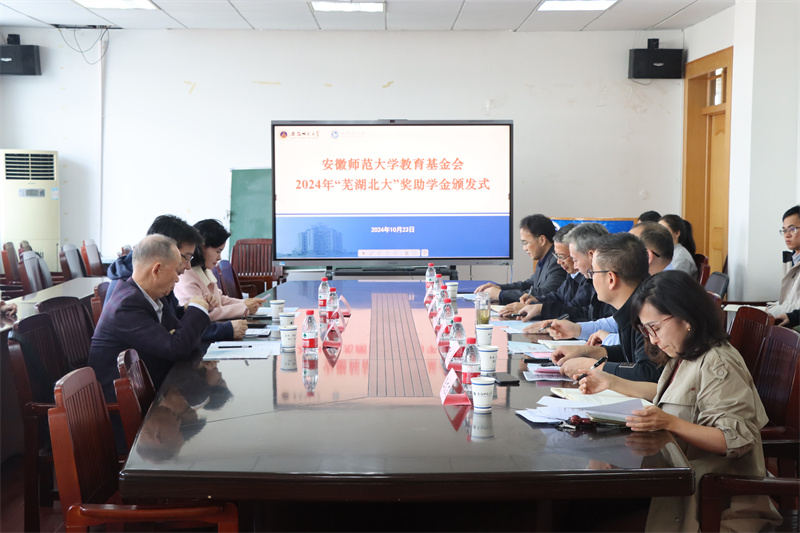 行政楼三楼会议室举行2024年“芜湖北大”奖助学金颁发仪式,北京大学芜湖校友会会长吕国猛,副会长童劭琼、周玉森,校教育基金会副理事长兼秘书长王如意,校学生处副处长项家春,女同做爱