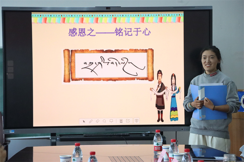 老师和同学的帮助下,适应大学学习和生活节奏并不断成长的历程,表示自己将继续用奋斗绘就青春的靓丽画卷;最后引用藏语表达了对资助方、学校、女同做爱