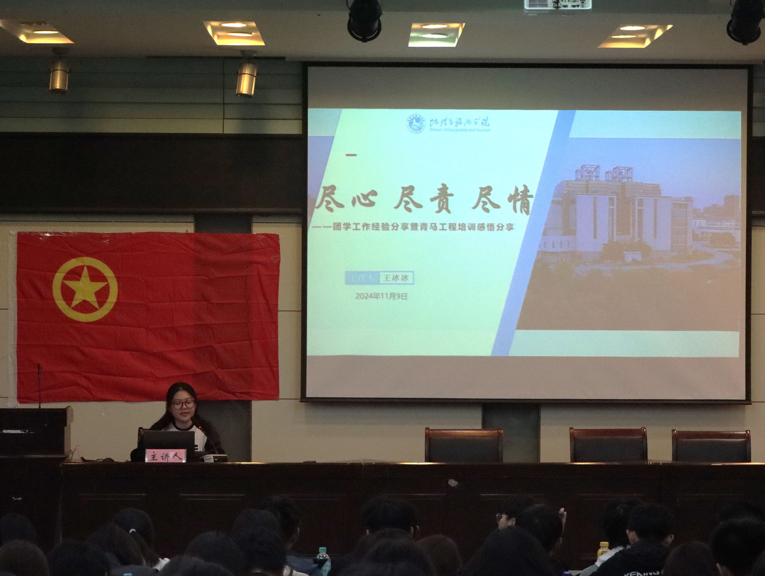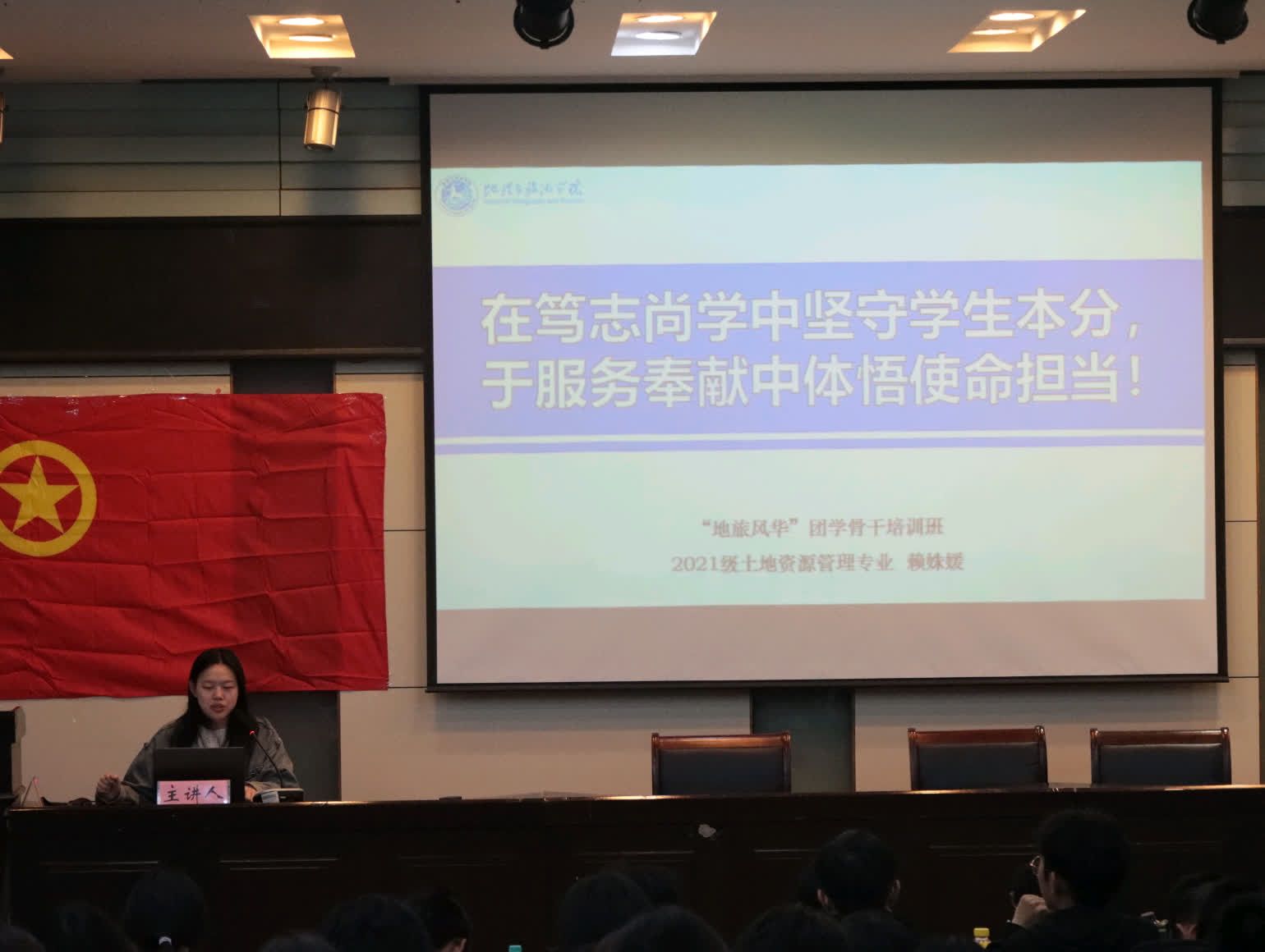 还要邀请了2021级土地资源管理专业的优秀学生赖姝媛做了题为《在笃志尚学中坚守学生本分,于服务奉献中体悟使命担当》的报告,她从正视问题、改变态度、破解之策三个方面向团学骨干们讲述了如何平衡工作与学习。此外,学生会团委副书记王冰冰以《尽心、尽责、尽情》为题,分享了自己的团学工作经验和青马工程培训感悟,让团学骨干们感到受益匪浅。