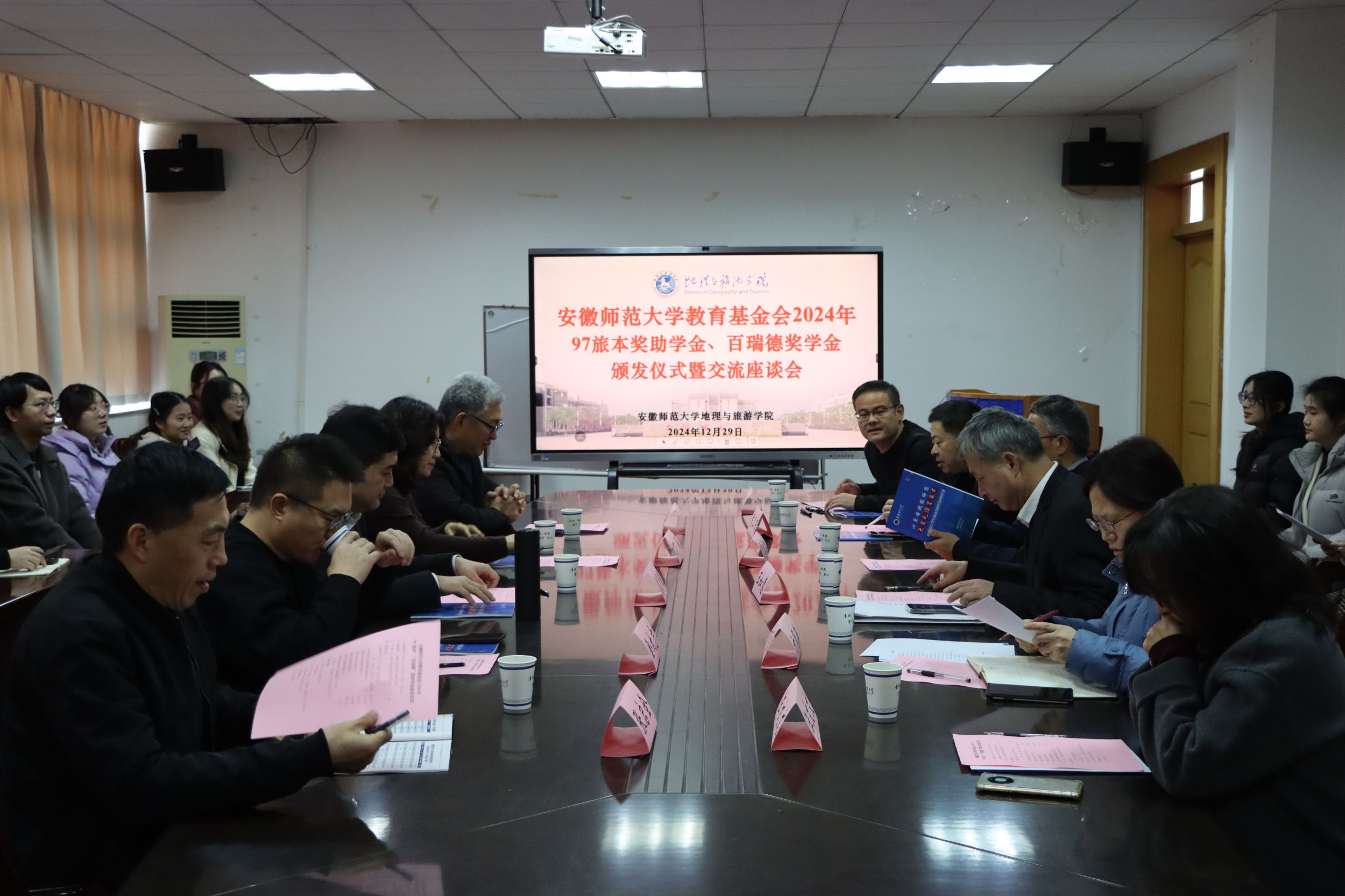 12月29日上午,校教育基金会2024年“97旅本”奖助学金、百瑞德奖学金颁发仪式暨座谈会在女同做爱