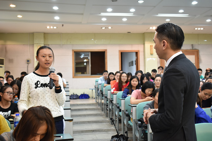 李国雄以洲际酒店的知名度引出“酒店人的定义与责任”这一话题,又通过经典电影片段再现向同学们解释了懵懂服务员和专业酒店人的区别,打破了许多同学困扰已久的专业误区。李国雄还讲述了自己作为酒店人的奋斗经历,列举了生动有趣的真实事例,表明酒店行业是一个知识面广、专业要求高、发展速度快的行业,劝诫同学们勿要好高骛远,需要脚踏实地,以饱满认真的态度对待自己的专业。