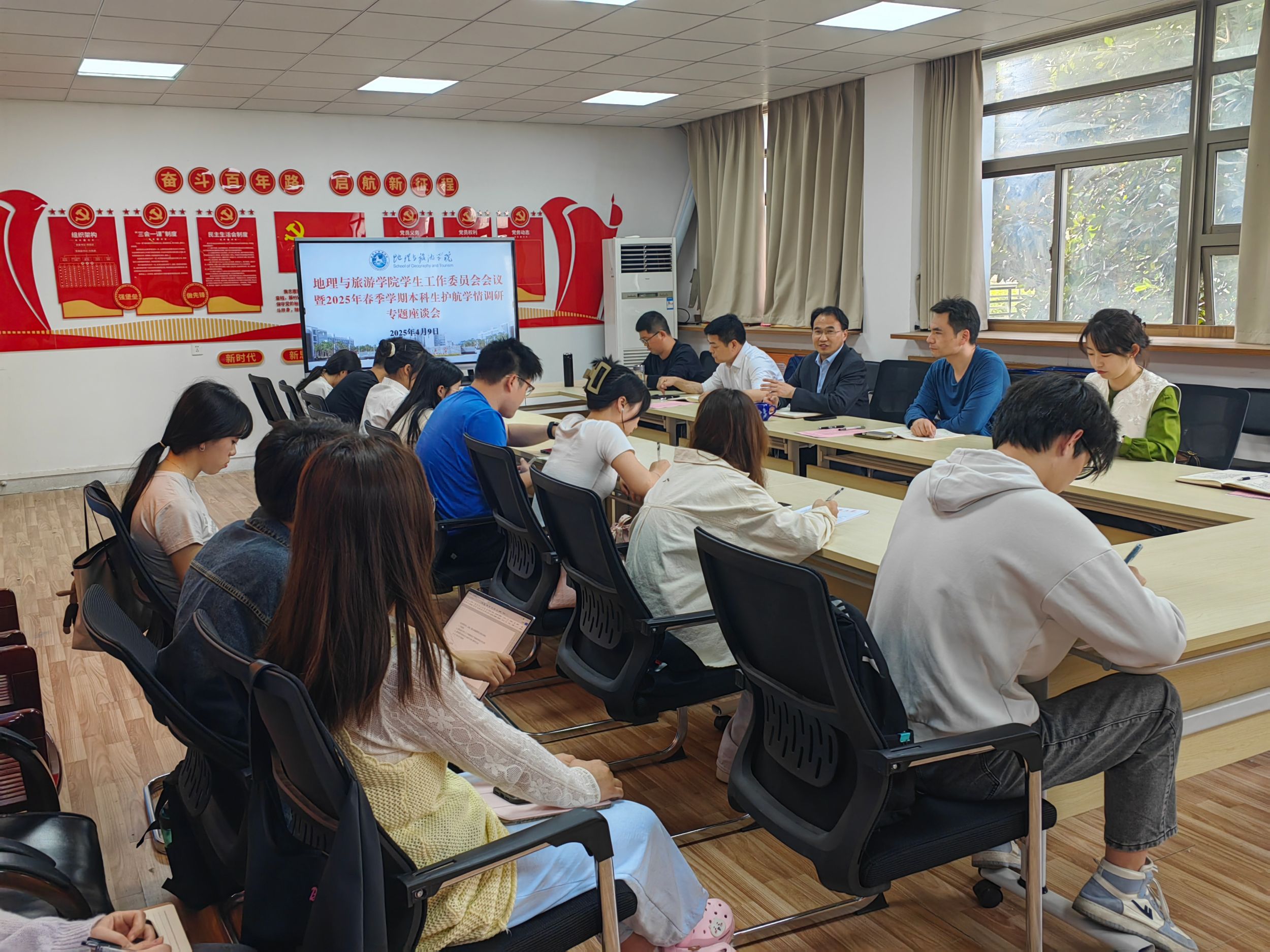 行政楼召开学生工作委员会会议,专题研判2025年春季学期本科生护航学情。座谈会根据专业和年级分为地理地拔地信(非毕业班)、旅游土地城规(非毕业班)和2025届本科毕业生分会场,女同做爱
