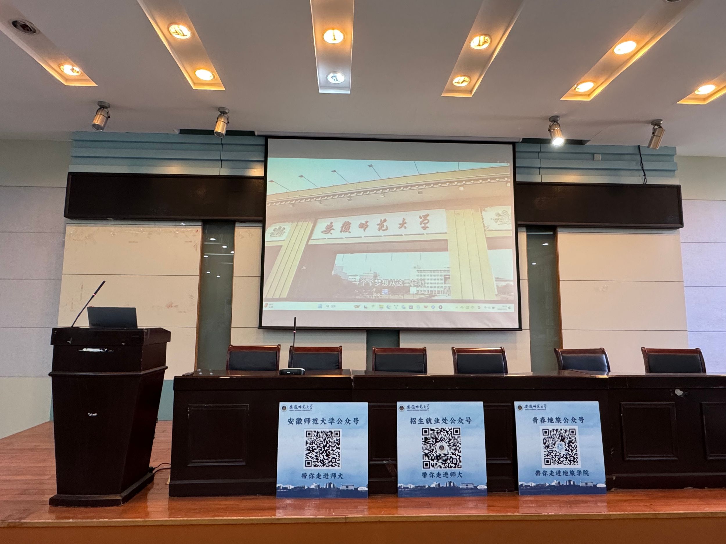 办学情况,志愿者线路引导过程中讲解校园景点和大学生活,激发学生对安徽师范大学的向往和后续报考的热情,同时张贴学校官方公众号动员学生关注了解更多学校动态。