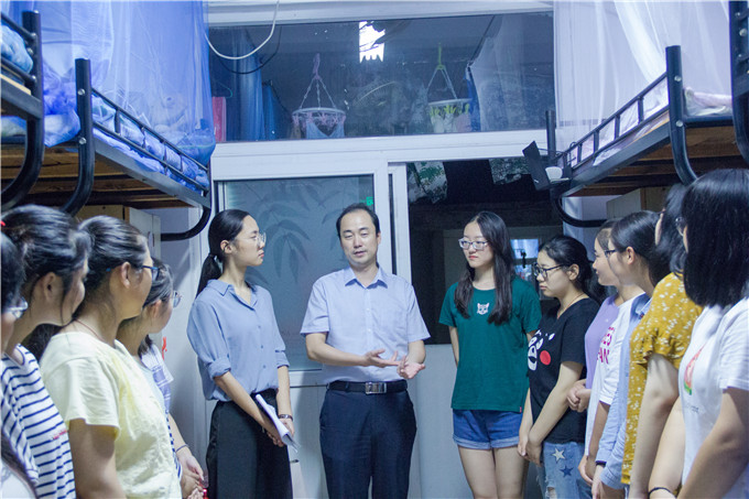 党委副书记乔静带领各专业新生辅导员深入寝室,开展新学期暨中秋佳节走访慰问工作。