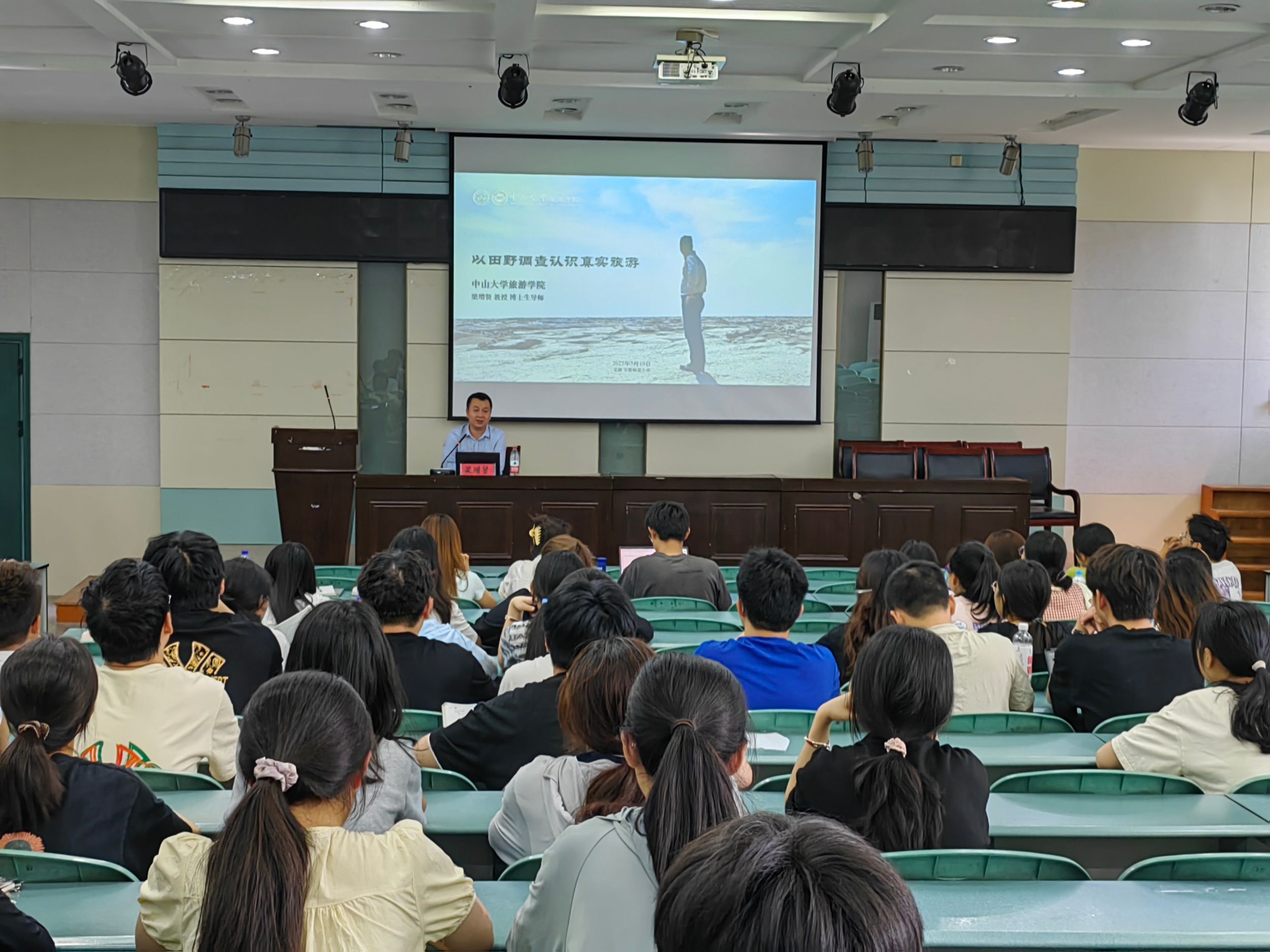 教授,博士生导师梁增贤教授作《以田野调查认识真实旅游》专题讲座。2022级、2024级旅游管理专业学生参加,会议由旅游管理专业负责人尹寿兵教授主持。
