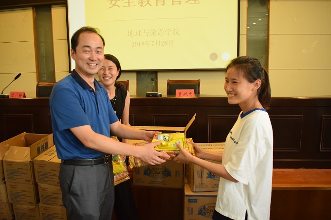 王美)骄阳似火,烈日炎炎,为做好暑期留校学生的安全教育管理和2018届考研学生的服务工作,7月28日下午,地旅女同做爱