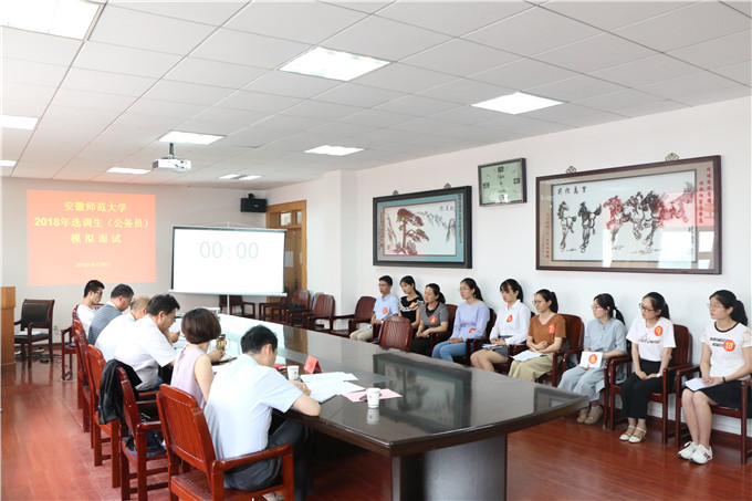 行政楼三楼会议室举行。校党委统战部部长王如意担任模拟面试主考官,校党委组织部正处级组织员胡培亮、校团委书记梁燕、校研究生院副院长步献新等应邀担任模拟面试考官,来自新传女同做爱