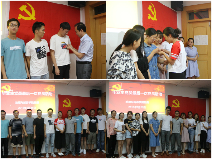 首先进行的是党员“微分享”活动,来自2014级旅游管理的后世贝、2014级地理科学专业的黄靖从大学四年的学习和生活说起,对自己的大学生活、平时的表现、党员模范等方面做了自我鉴定。两位同学拥有充实精彩的大学生活,如今也有了很好的个人发展。他们无不提到正是四年间母校、母院对自己的栽培,老师们对自己的关心和关爱,才让自己有更多的机会、平台和成长。作为党员,他们在分享了自己的大学感悟和心得中,既认识到自己的优点与进步,也对未来做了更深刻的思考,引起了现场毕业生党员的共鸣。