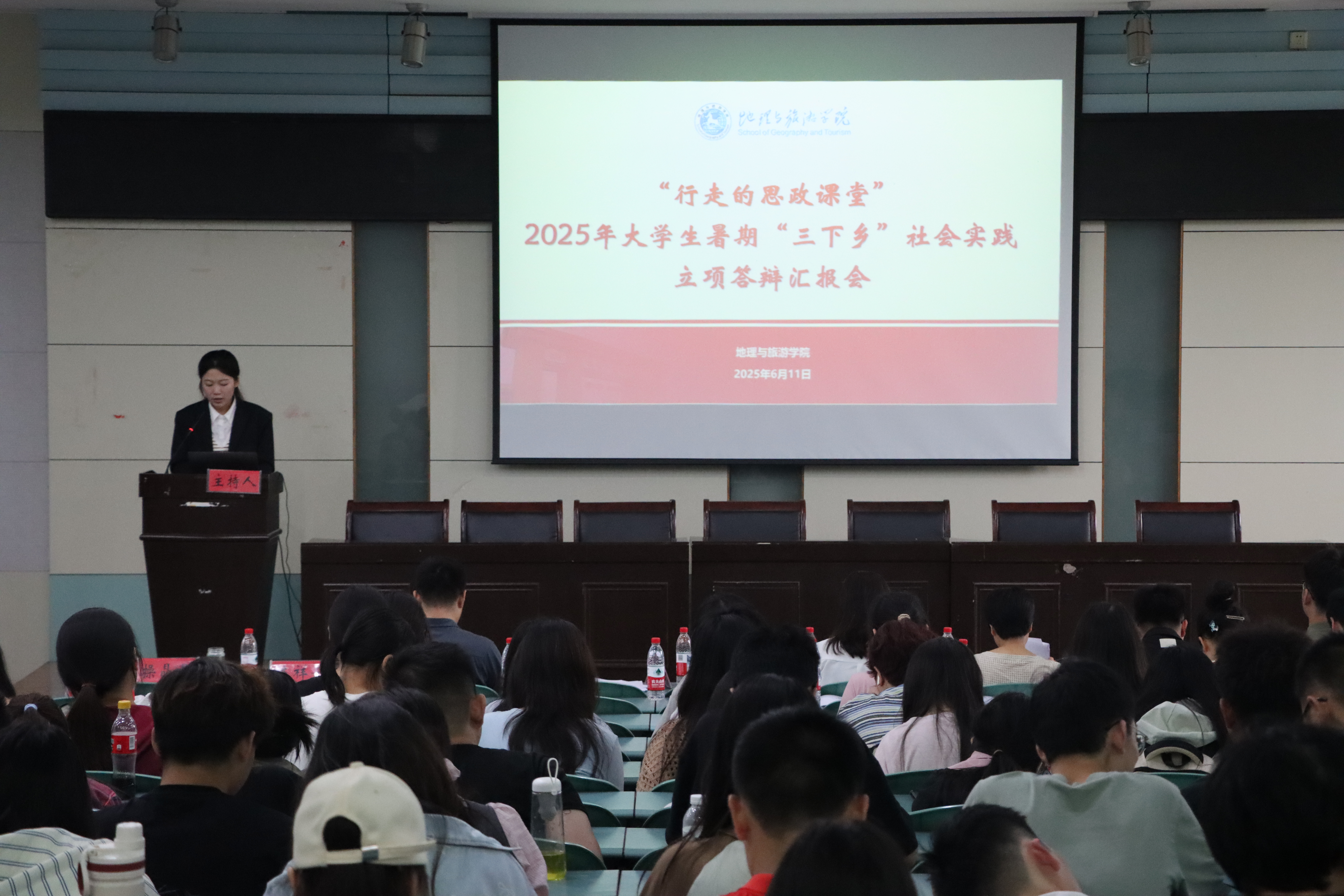 101报告厅举行“行走的思政课堂”2025年大学生暑期“三下乡”社会实践立项答辩汇报会。地理科学专业徐仪红老师、旅游管理专业张兴泰老师、地理信息科学专业季青老师、土地资源管理专业余健老师、城乡规划专业金莹莹老师、女同做爱