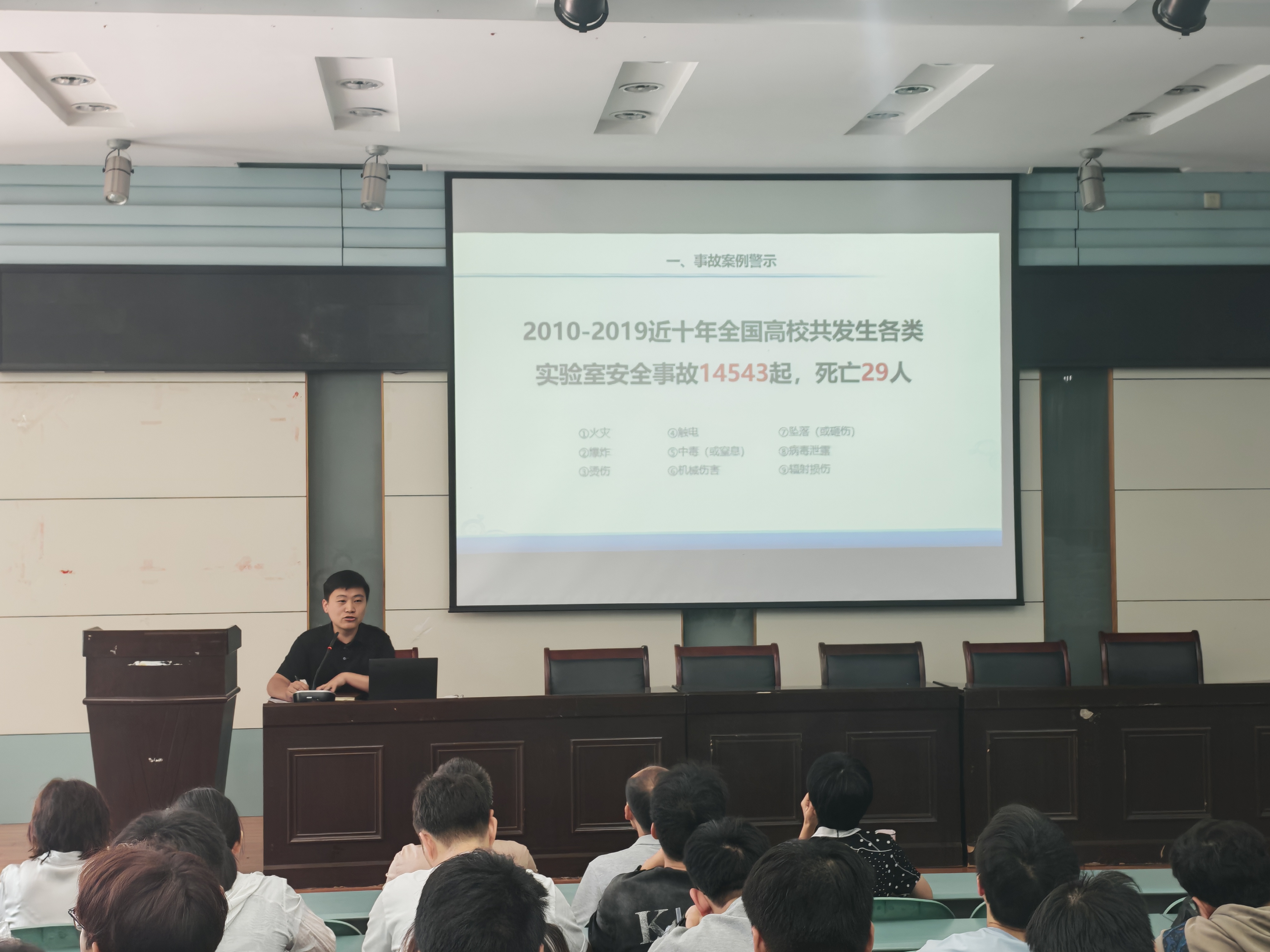 召开了实验室安全管理专题培训会,邀请校资产与实验室管理处李硕林老师做专题讲座。会议由行政副院长汪文文主持,各实验室安全责任人、相关实验教师及研究生代表参加会议。