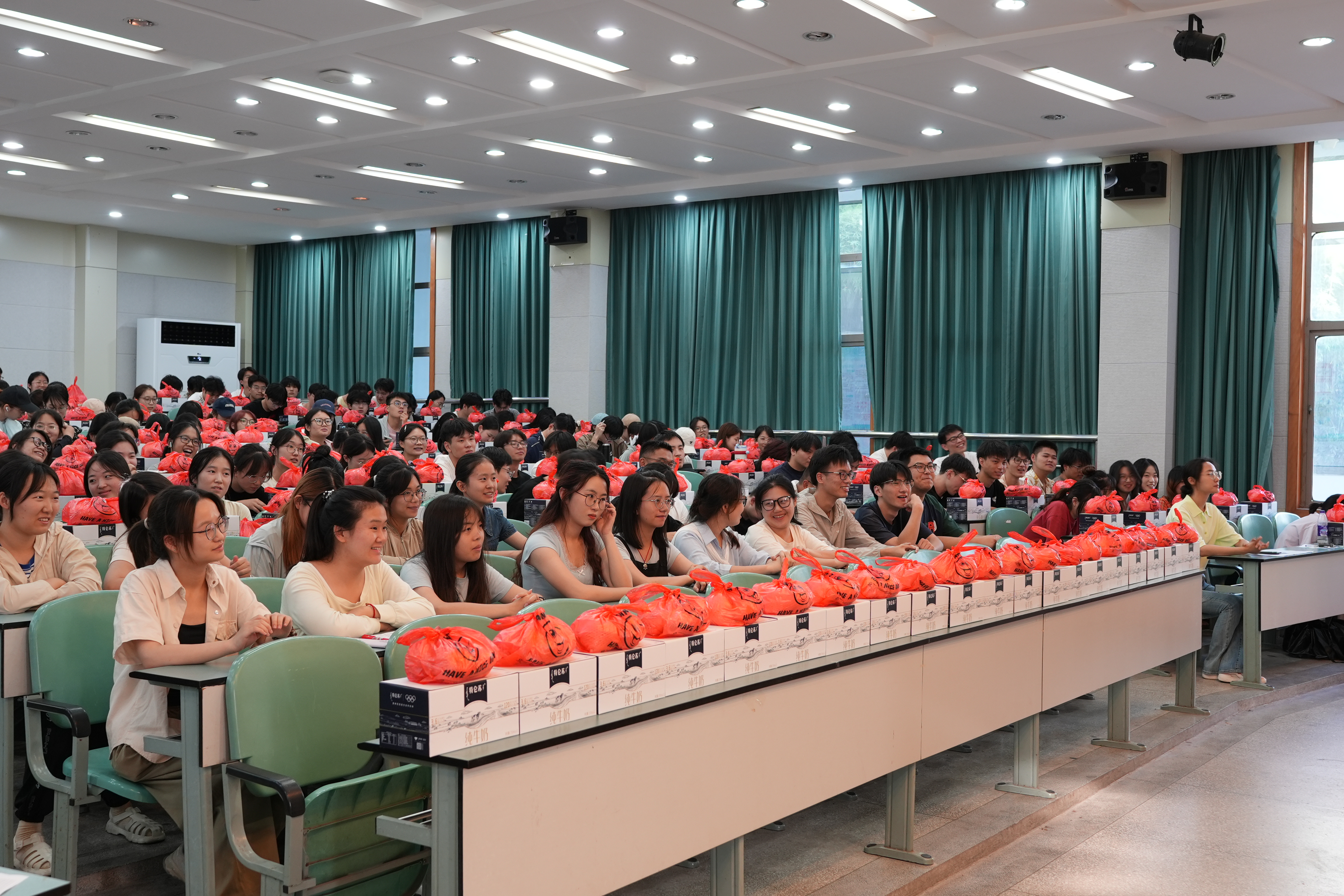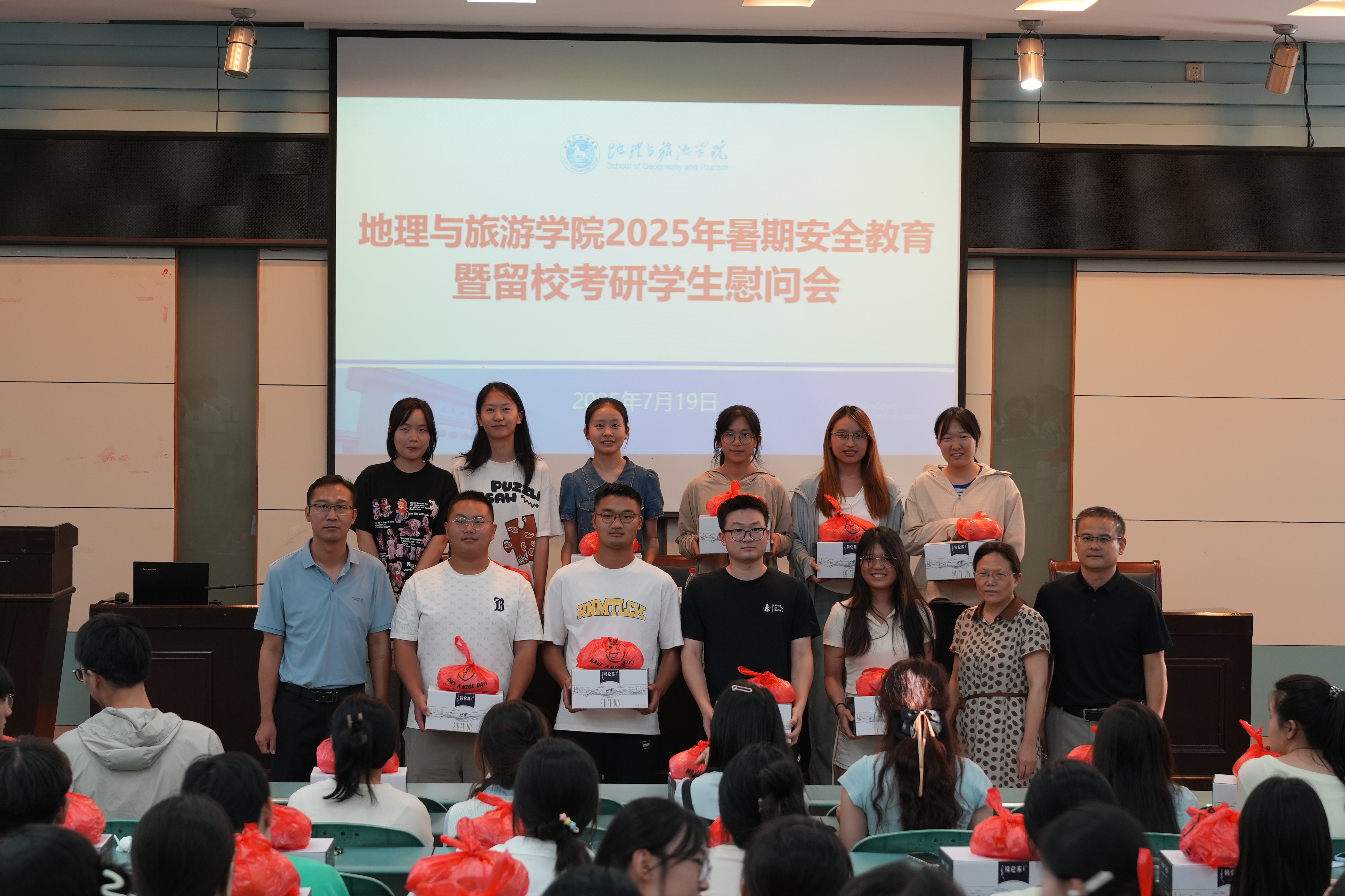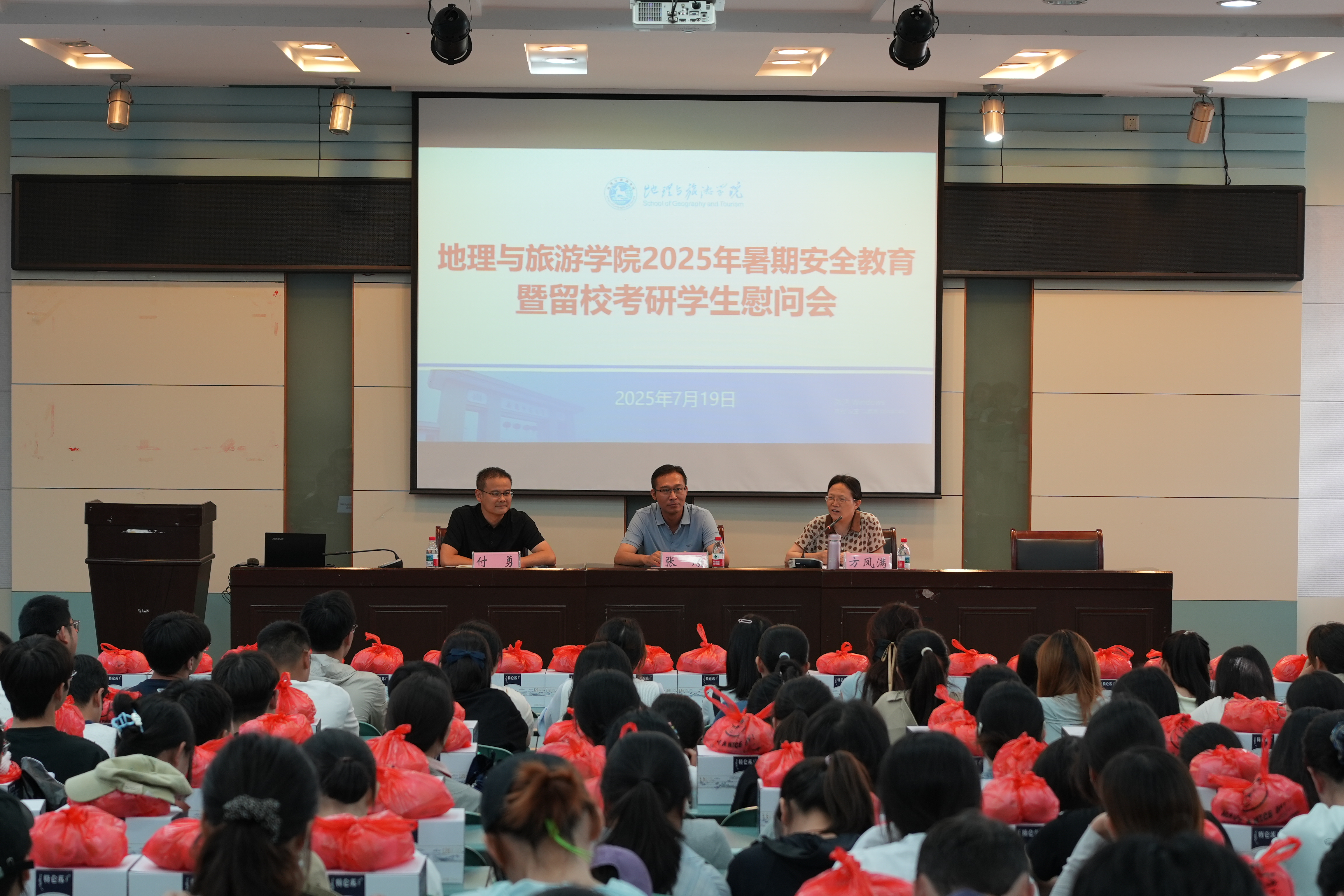 在实验楼101报告厅召开2025年暑期留校学生安全教育暨考研学生慰问会。女同做爱