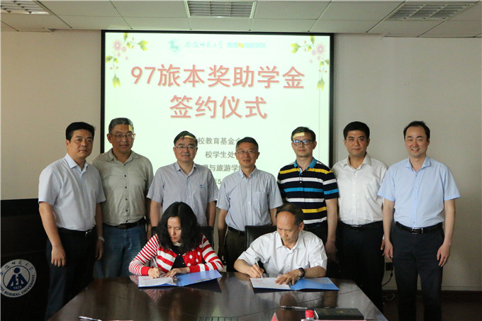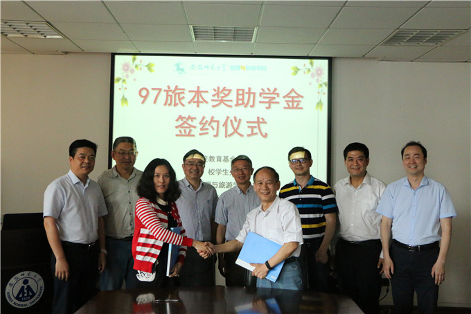 赵将)喜迎母校九十华诞,资助育人不忘恩情。 5月15日下午,安徽师范大学97旅本奖助学金签约仪式在女同做爱