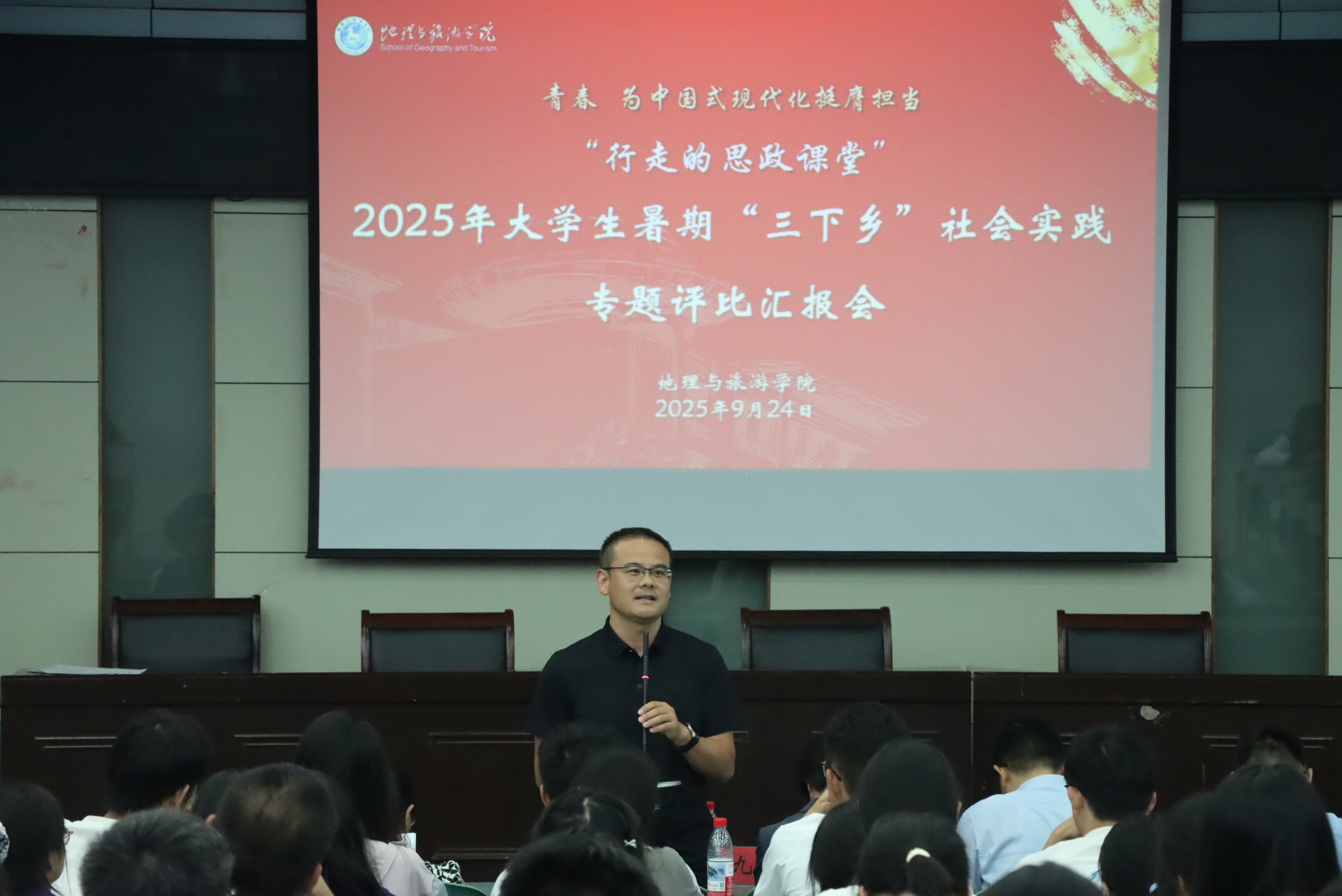 本次评比汇报共有15支课程团队和8个班级参与展示。团队负责人围绕实践主题、课程设计、实施过程、成果产出等方面,以PPT形式进行汇报,全面呈现“行走的思政课”在价值引领、专业融合、服务社会等方面的多元路径。在成果展示环节,各课程团队充分体现了“走-看-讲-思-做”的实践逻辑与课程内涵:如“正气庐州路,青春信仰行”团队走进合肥包公文化园,开展志愿讲解与文化创意设计,在服务中传承廉政文化;“做青弋行者,序檐语岁时”团队深入黄山歙县阳产村,聚焦传统村落保护与可持续发展路径,践行乡村振兴课的专业使命;“渔脉新生”团队走访长江流域安徽段11个县(市、区),围绕退捕渔民可持续生计开展系统调研,形成具有政策参考价值的调研报告;“童心圆”支教宣讲团在芜湖马塘新镇开展支教活动,以趣味课堂激发乡村儿童学习兴趣;“摇篮育初心,青春井冈行”团队踏上井冈山革命圣地,在行走中感悟信仰力量;“淮畔四时·中州盛宴”团队结合节气文化开展文旅融合调研,推动中华优秀传统文化创造性转化。此外,8个班级代表也依次登台,汇报班级整体社会实践组织情况与育人实效,展现出地旅学子结合专业、扎根基层、服务社会的责任担当与青春风采。