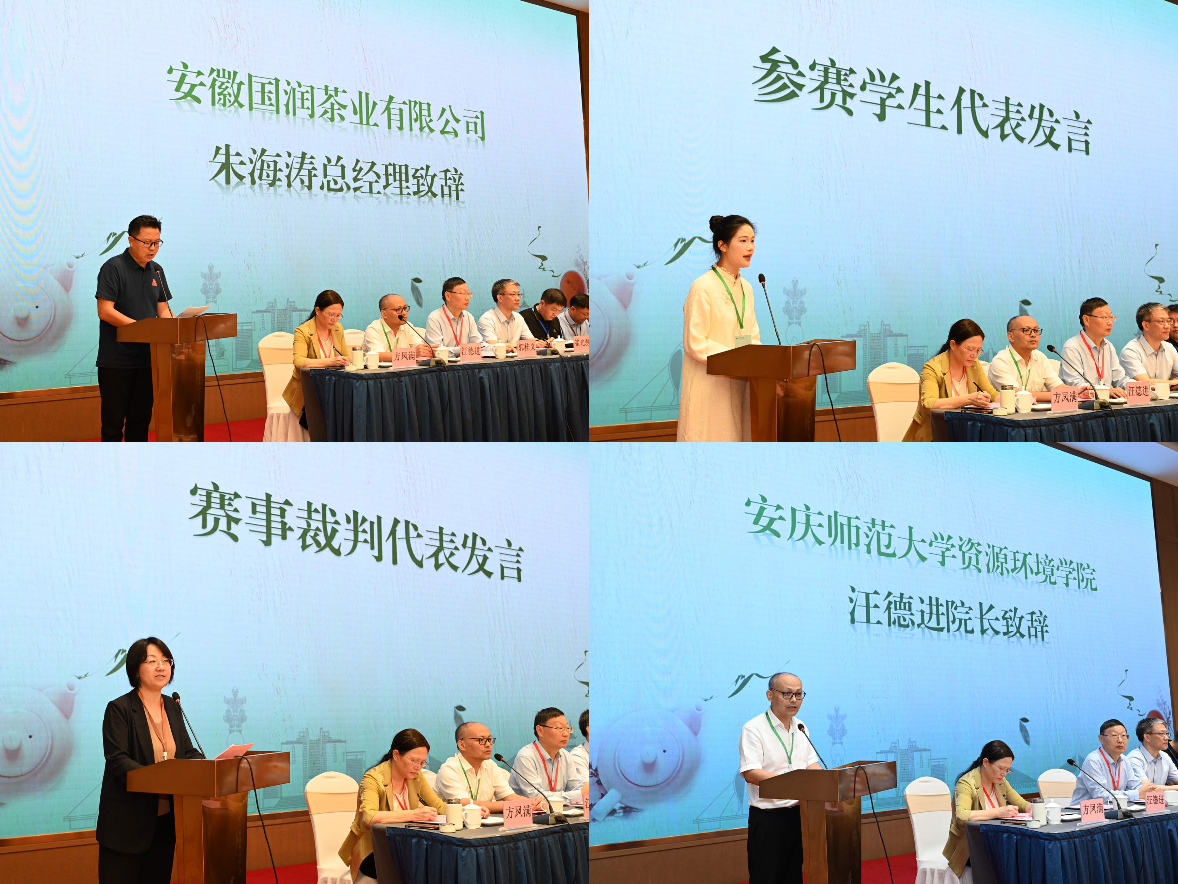 赛事赞助企业代表朱海涛,参赛学生代表、芜湖职业技术大学的张莹,裁判代表、合肥大学科研处副处长郑嬗婷以及下一届赛事筹备方代表汪德进分别进行了发言。