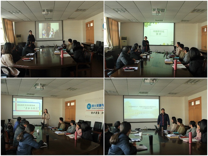 学生工作,与全体辅导员就班级建设、典型选树展开了讨论;2015级辅导员吴燕以“高校辅导员形象塑造的虚拟与现实”为主题,从专业角度解析了辅导员日常工作形象的塑造,以及辅导员形象与师生关系、工作开展等方面的关系。2017级辅导员王美依托专业,以“中国茶文化赏析”为题,简要介绍了茶起源、茶文化发展、茶类辨析、茶叶冲泡和饮茶礼仪等方面的知识,提升了辅导员知识储备和日常接待礼仪;2014级辅导员赵将结合自己的研究生学习情况,详细解析了知识理念从传播到生产的过程,并就社会科学论文写作框架进行了简要介绍。