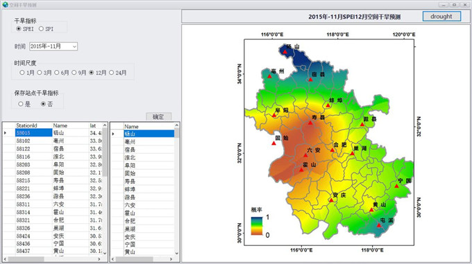 基于该理论成果在安徽省地区的开展应用,开发了安徽省干旱预防预警系统构,该监测系统可以在精细空间尺度上对农业干旱灾害进行连续、动态、定量化、可视化的监测与分析研究,为防灾减灾提供决策支持和信息服务。