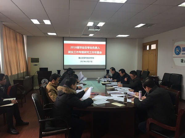 为了保证2018届毕业生充分高质量就业, 12月27日下午,国旅学院召开了2018届毕业生专业负责人就业工作专题研究工作布置会。会议由党委副书记乔静主持。院领导班子、各专业负责人和毕业班辅导员参加了本次会议。